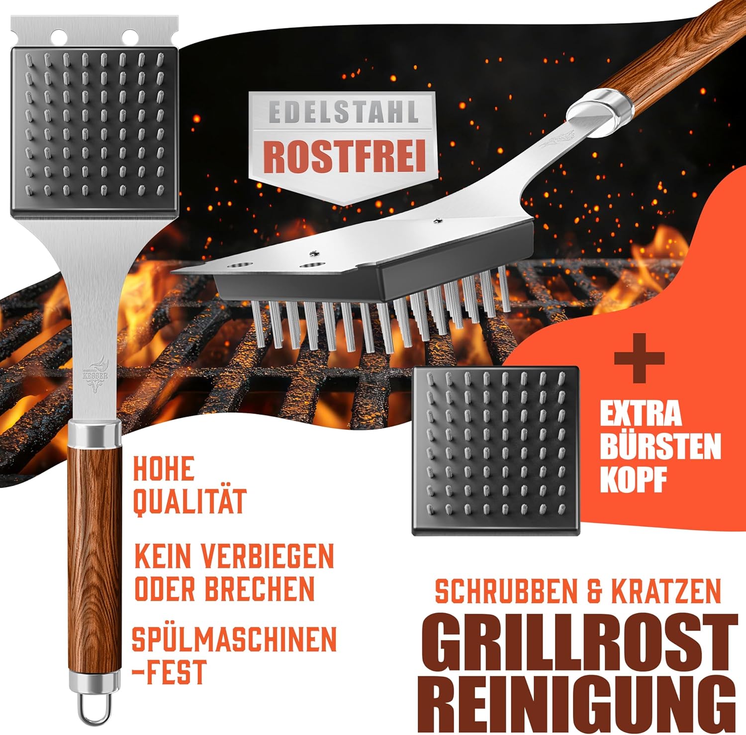 1x Grillbürste aus Edelstahl (inkl. Ersatzbürstenkopf)