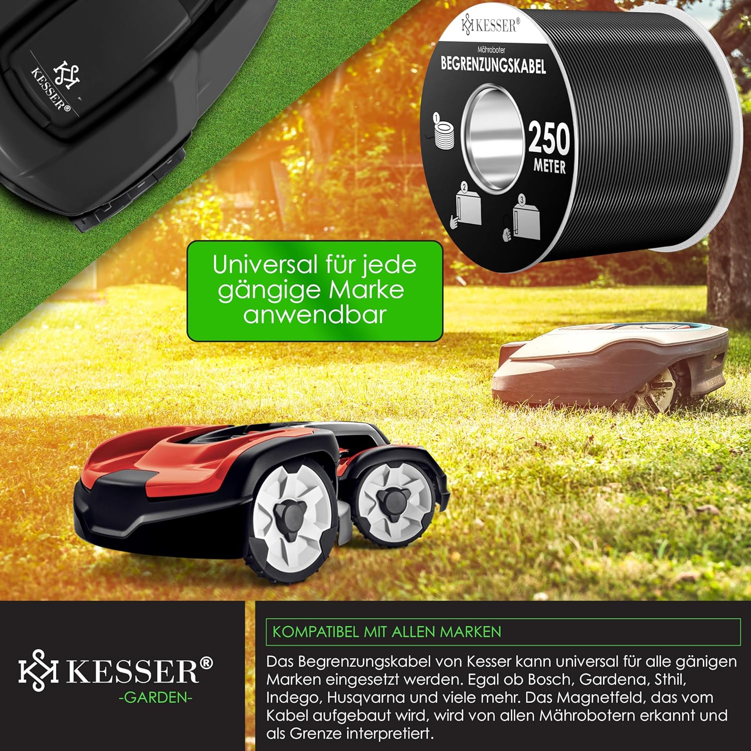 • Universeel en geschikt voor elke poort: natuurlijk kan onze begrenzingskabel voor alle gangbare merken worden gebruikt. Of het nu voor grasmaaiers van Bosch, Gardena, Stihl, Indego en meer is. Het magnetische veld, dat door het leggen van de kabel wordt opgebouwd, wordt door alle gangbare robotmaaiers herkend en als grens waargenomen. Dankzij onze maten zijn onze kabels geschikt voor kleine tuinen met een oppervlakte van 30 m² tot grote gazons van 1000 m².