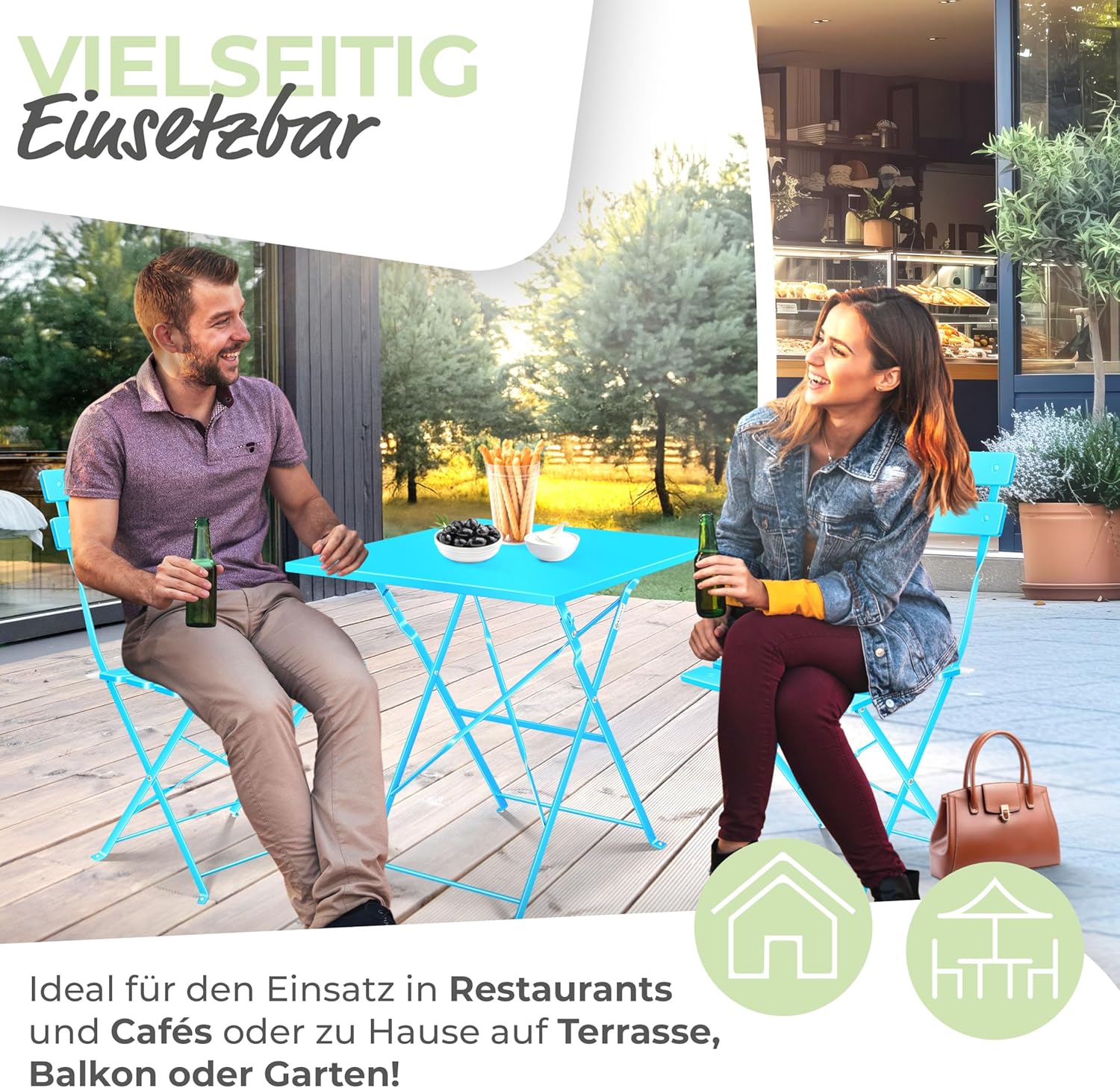 • Veelzijdig inzetbaar: als balkonmeubel, voor een gezellig ontbijt in de tuin of als praktische zitgroep in het café, het tijdloze design past bij elke interieurstijl. Onderhoudsarm en gemakkelijk te reinigen: een rondom geslaagde set voor iedereen die functionaliteit en stijl wil combineren.