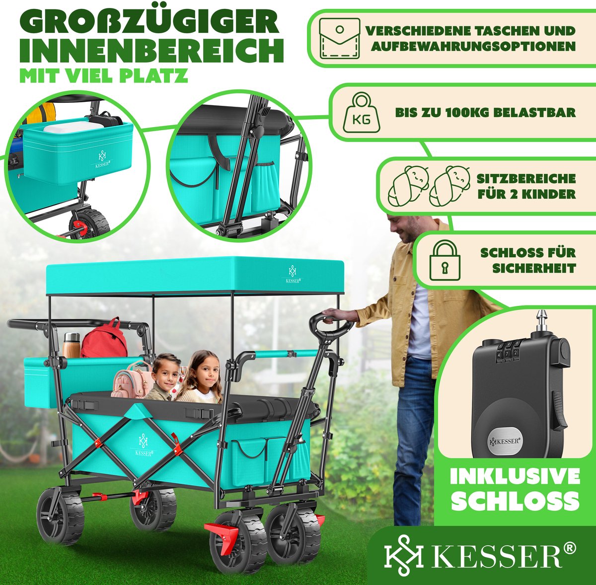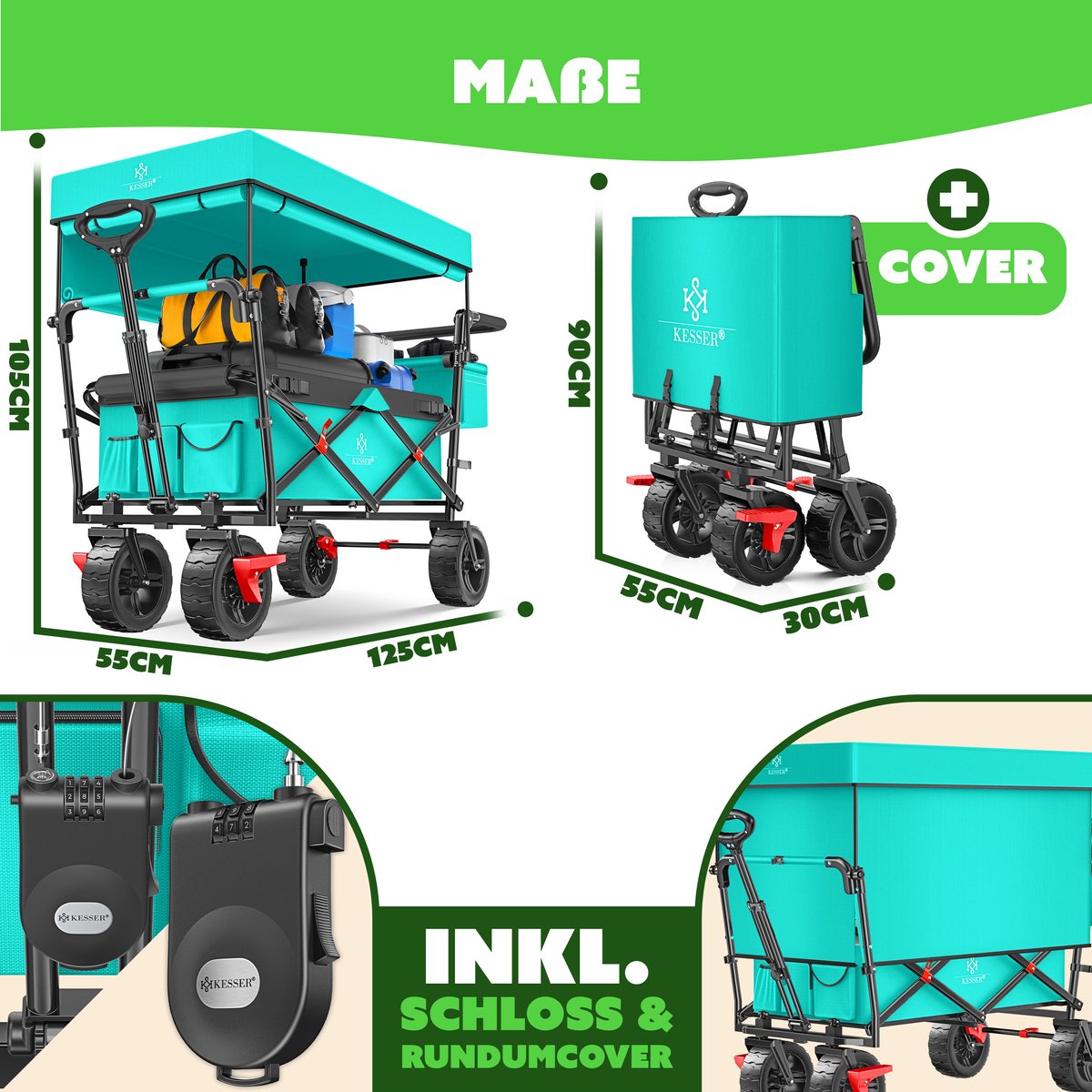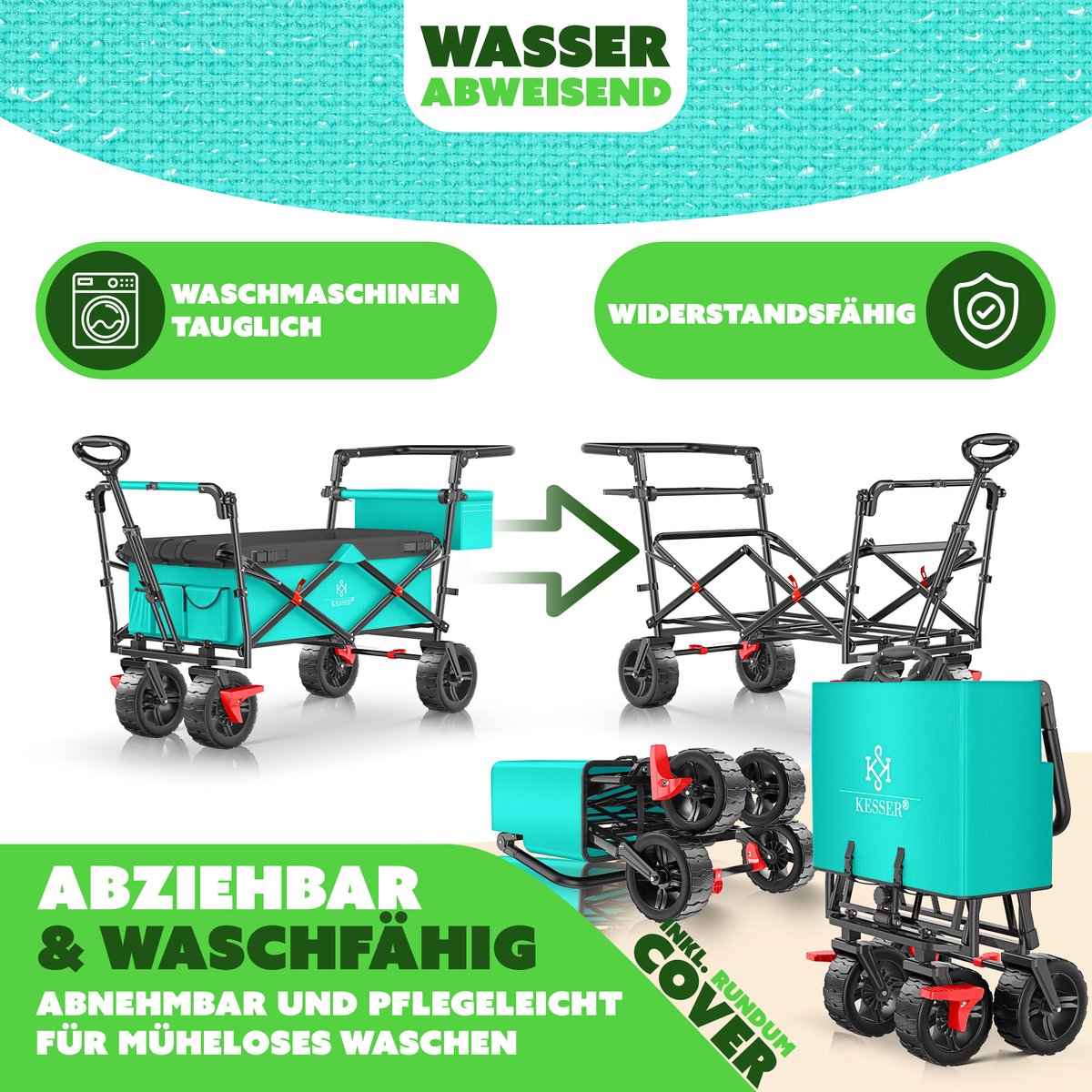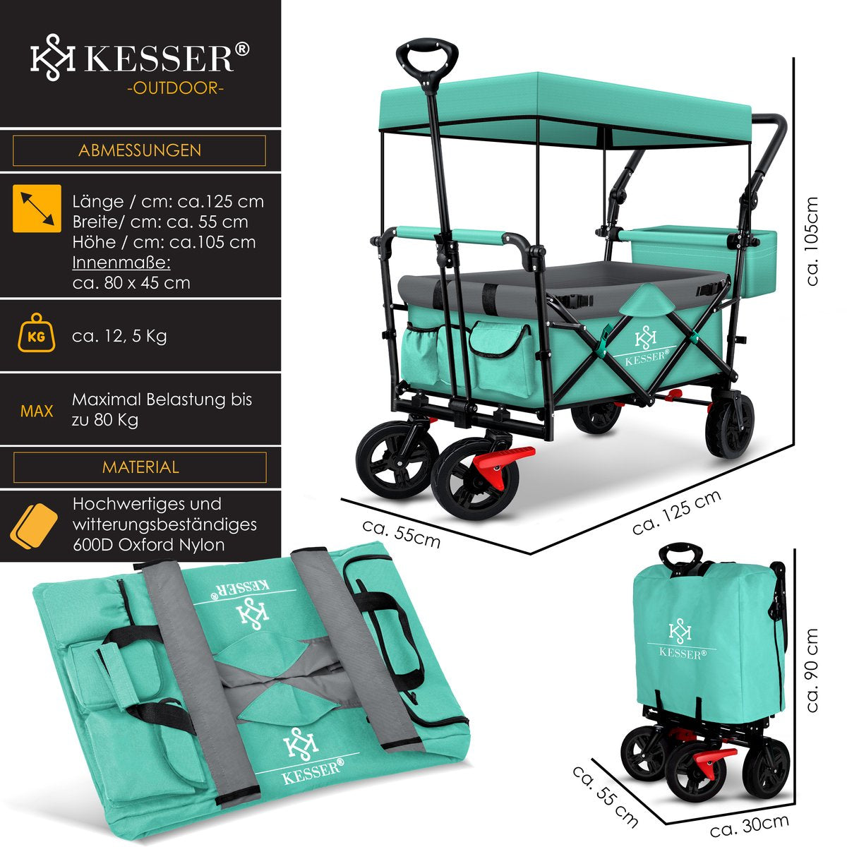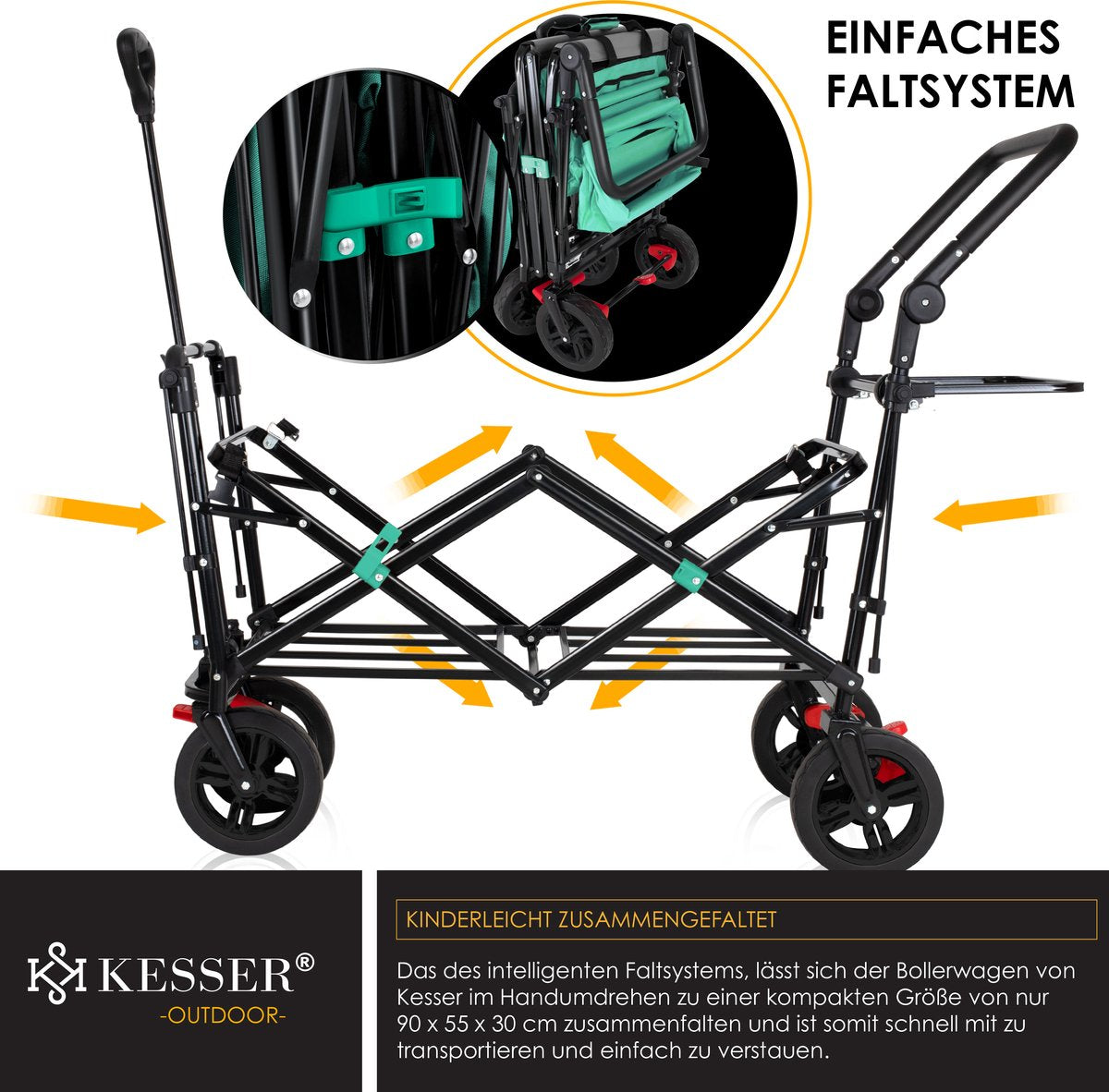 De KESSER opvouwbare steekwagen GT-9000 met afneembaar dak is veelzijdig.