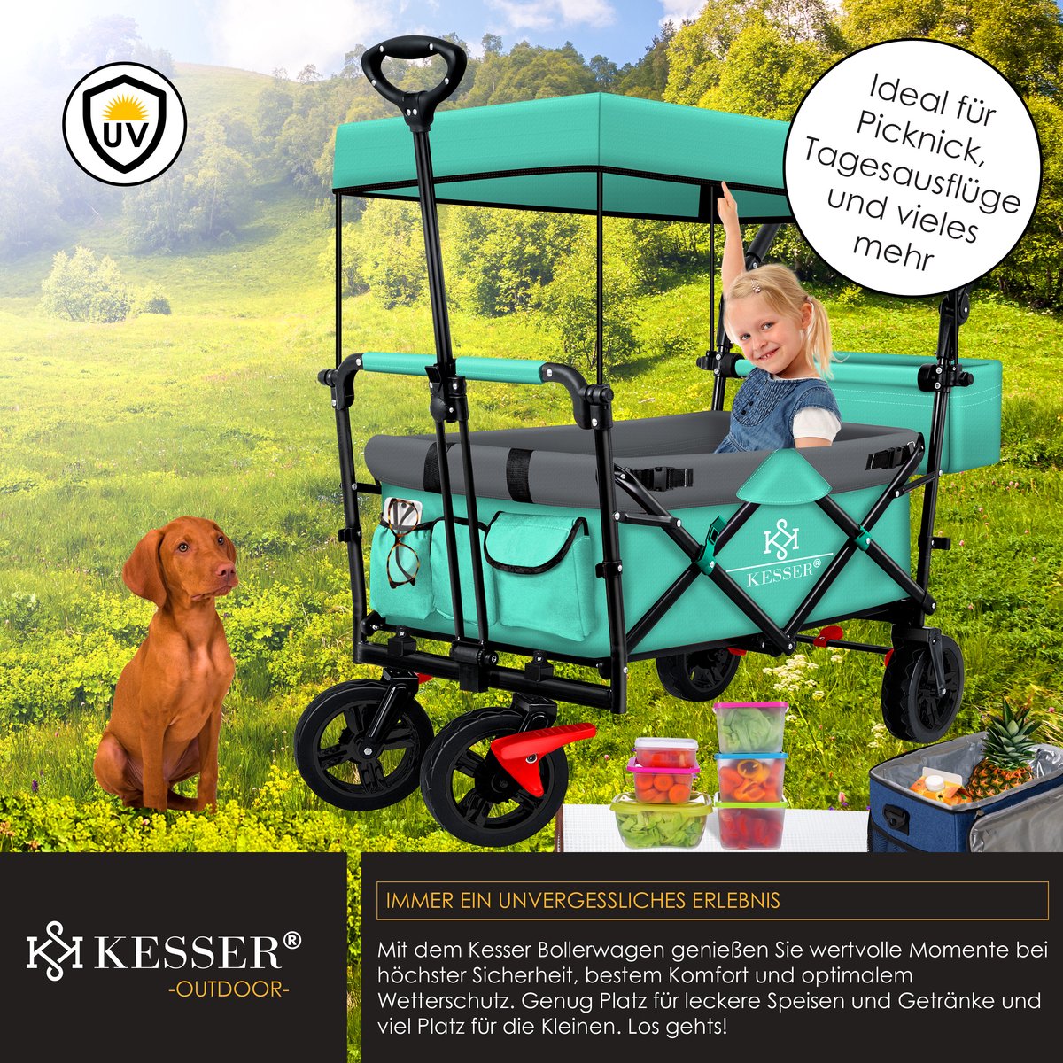 IDEAAL VOOR ALLERLEI UITSTAPJES: geschikt voor kamperen, barbecues, winkelen in een winkelcentrum, wandelen in een park of andere buitenactiviteiten biedt veel ruimte voor uitstapjes met de kinderen, festivals of andere vrijetijdsactiviteiten, hij is compact op te vouwen wanneer nodig