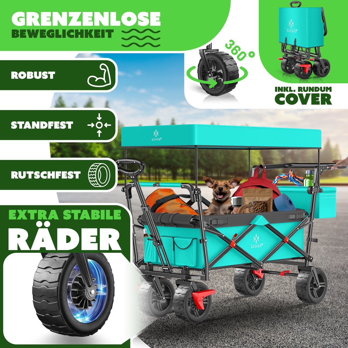 KESSER® Bolderkar - Opvouwbaar - Bolderwagen - Mintgroen