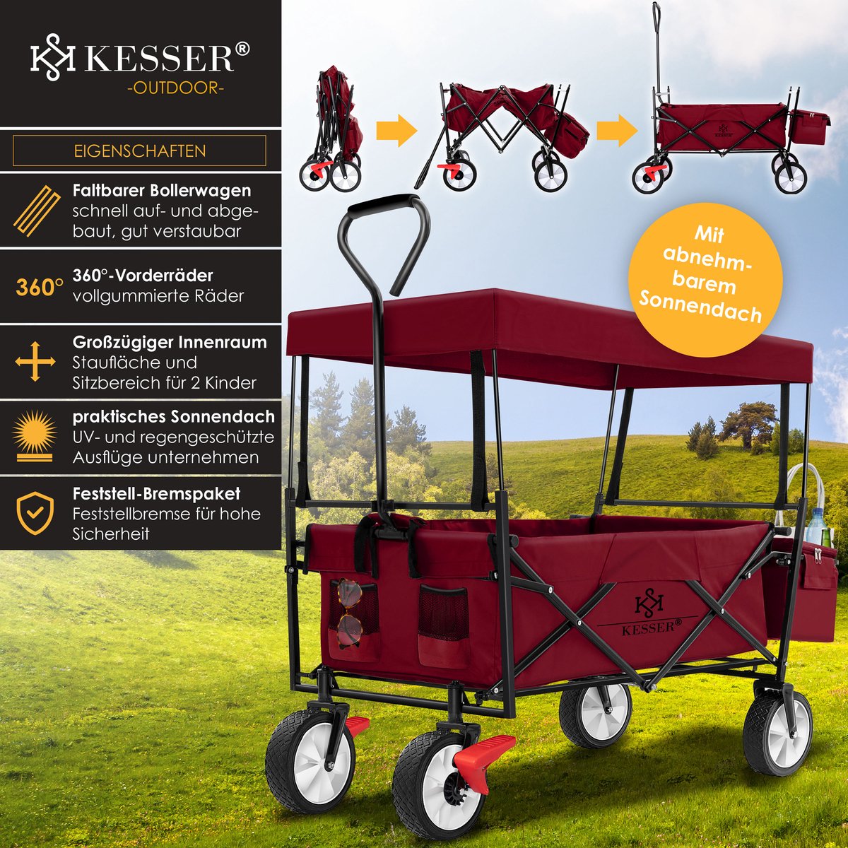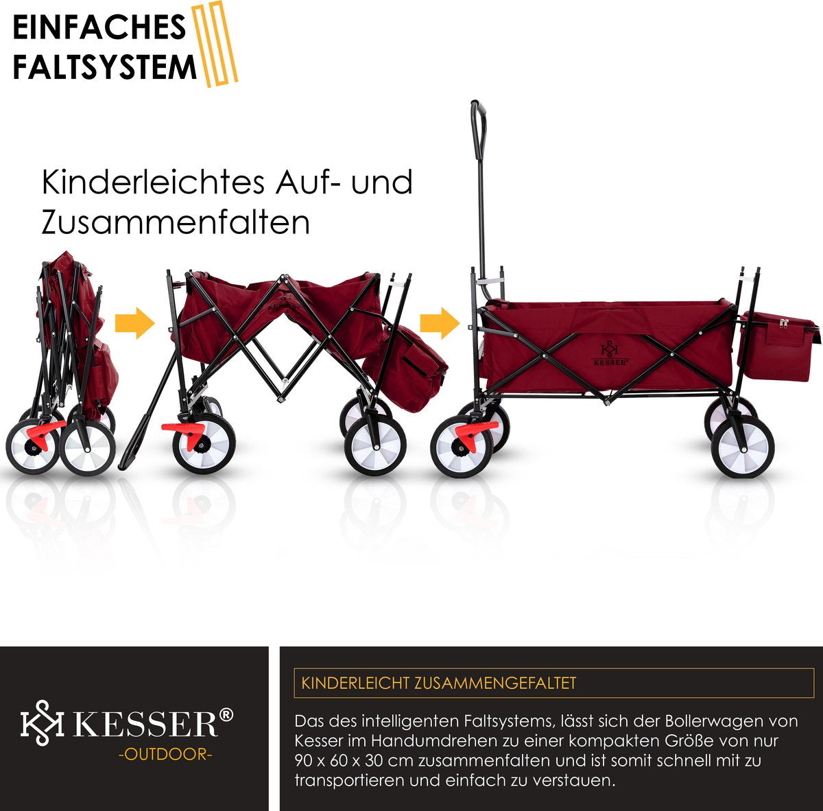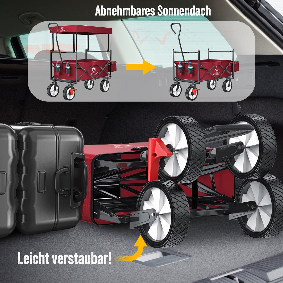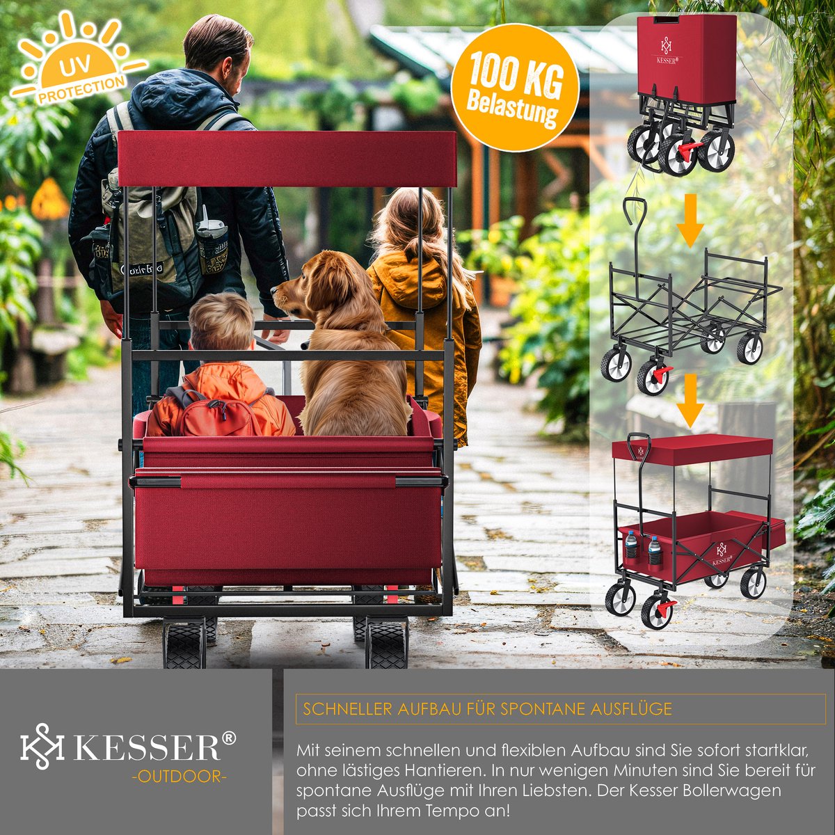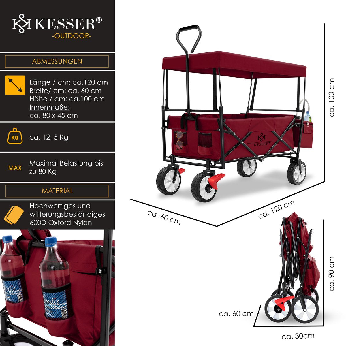 KESSER® Opvouwbare Bolderkar met Dak Handwagen Transportkar Gerätewagen | inclusief 2 Netvakken en een Buitenvak | opvouwbaar | Volrubber Wielen | tot 100 kg Draagvermogen | Met Voorrem