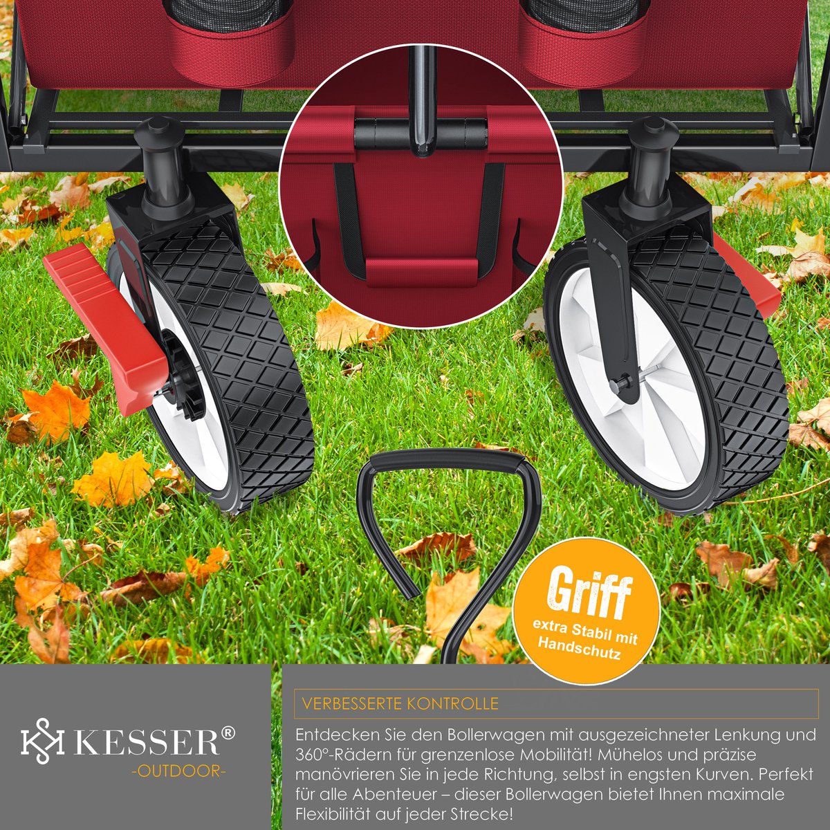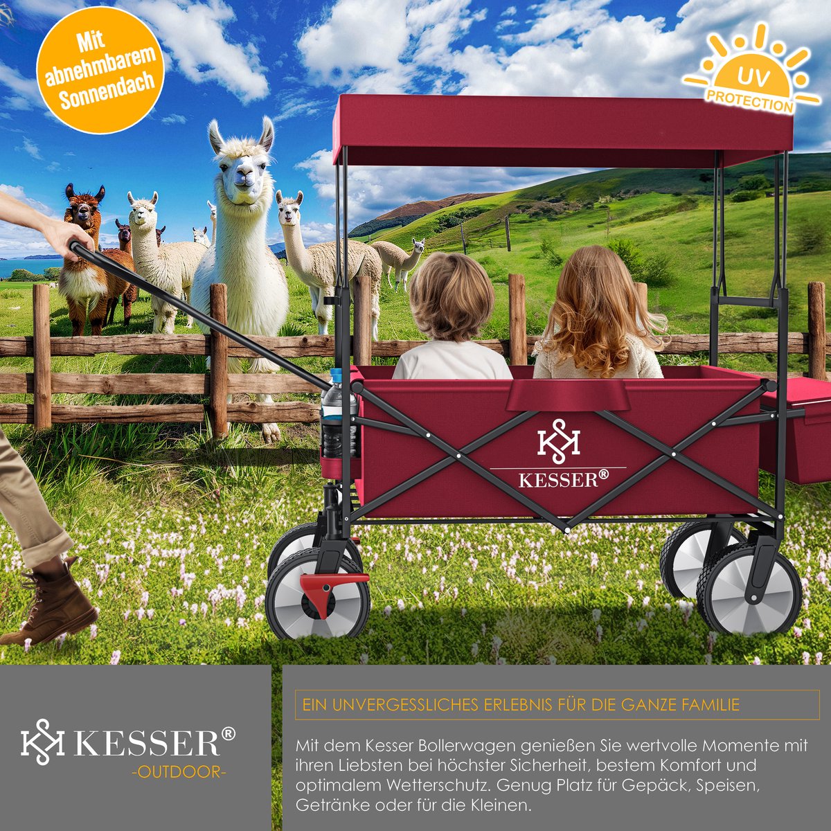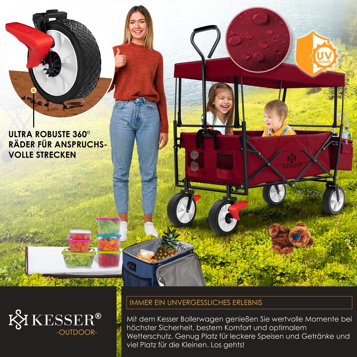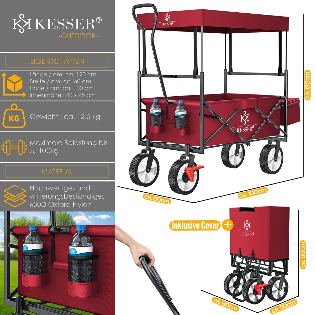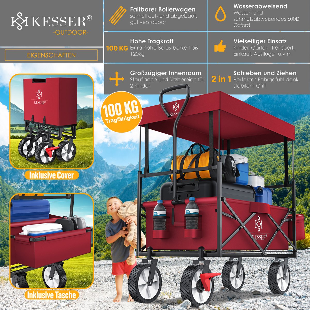 KESSER® Opvouwbare Bolderkar met Dak Handwagen Transportkar Gerätewagen | inclusief 2 Netvakken en een Buitenvak | opvouwbaar | Volrubber Wielen | tot 100 kg Draagvermogen | Met Voorrem