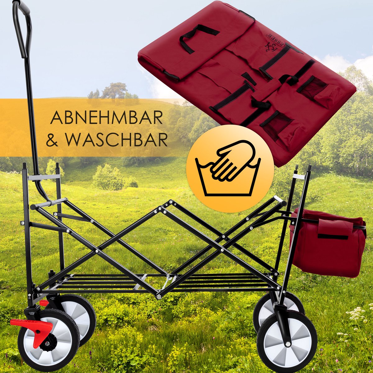 MULTITALENT: Onder de opvouwbare transportwagens biedt deze kar voldoende ruimte voor uitstapjes met de kinderen, festivals of andere vrijetijdsactiviteiten, met zijn laadoppervlak, extra XXL tas aan de achterzijde en diverse houders. Hij kan indien nodig compact worden ingeklapt.
