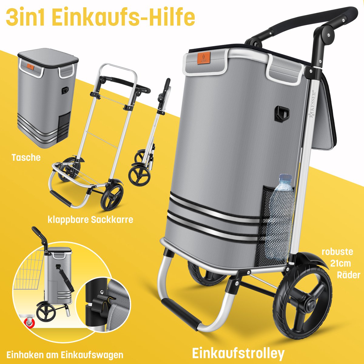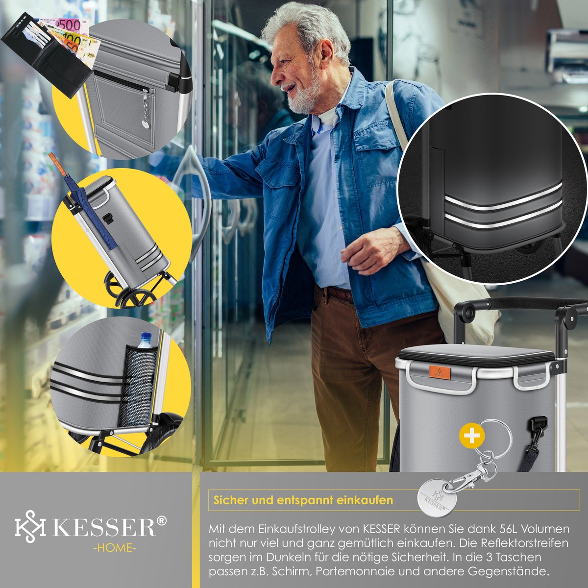 KESSER Boodschappenwagen - Royaal opbergruimte, hoogwaardige materialen, veelzijdig in gebruik, een geïntegreerd koelvak en maximale veiligheid dankzij reflecterende strepen - de ideale metgezel voor comfortabel en veilig winkelen