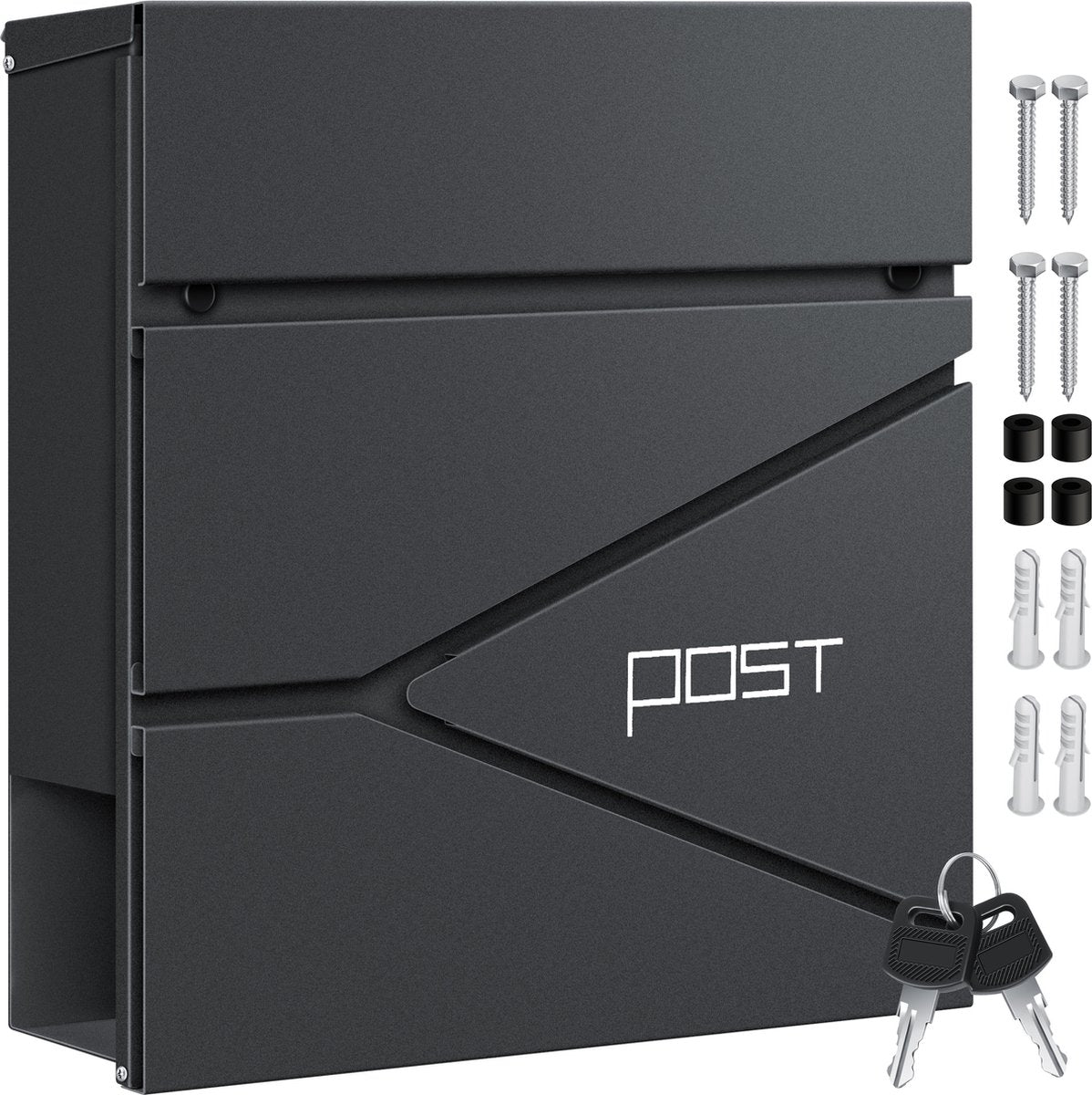 KESSER® Brievenbus met Krantenvak Wandmontage Roestvrij Staal - Wandbrievenbus inclusief Montagemateriaal 2x Sleutels, Afsluitbaar, Softclose-deksel - Antraciet