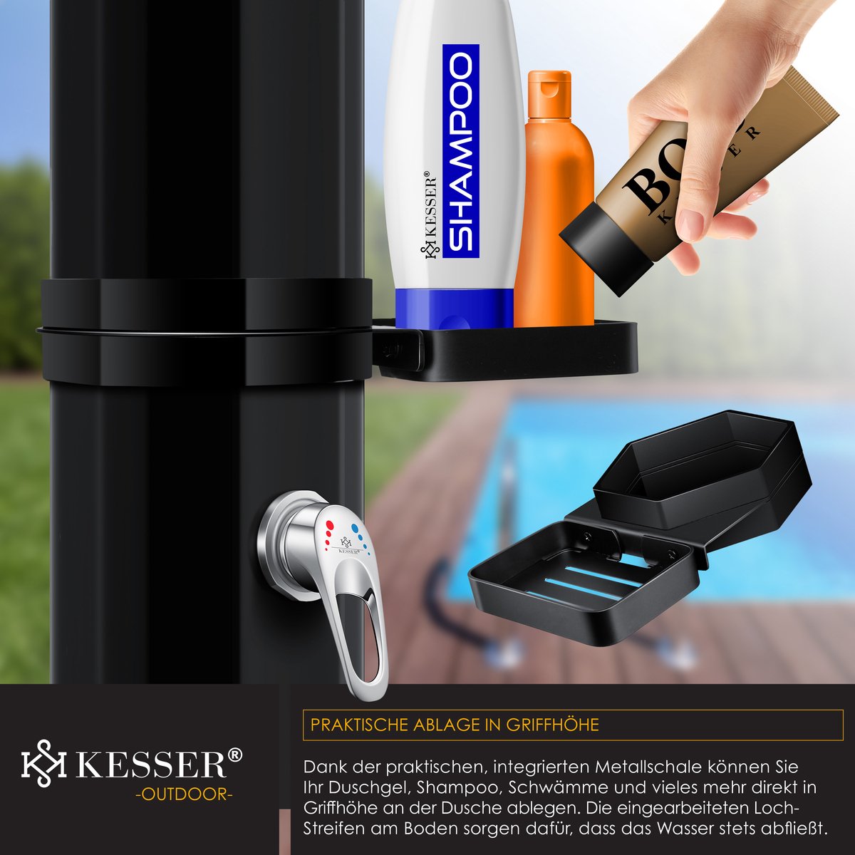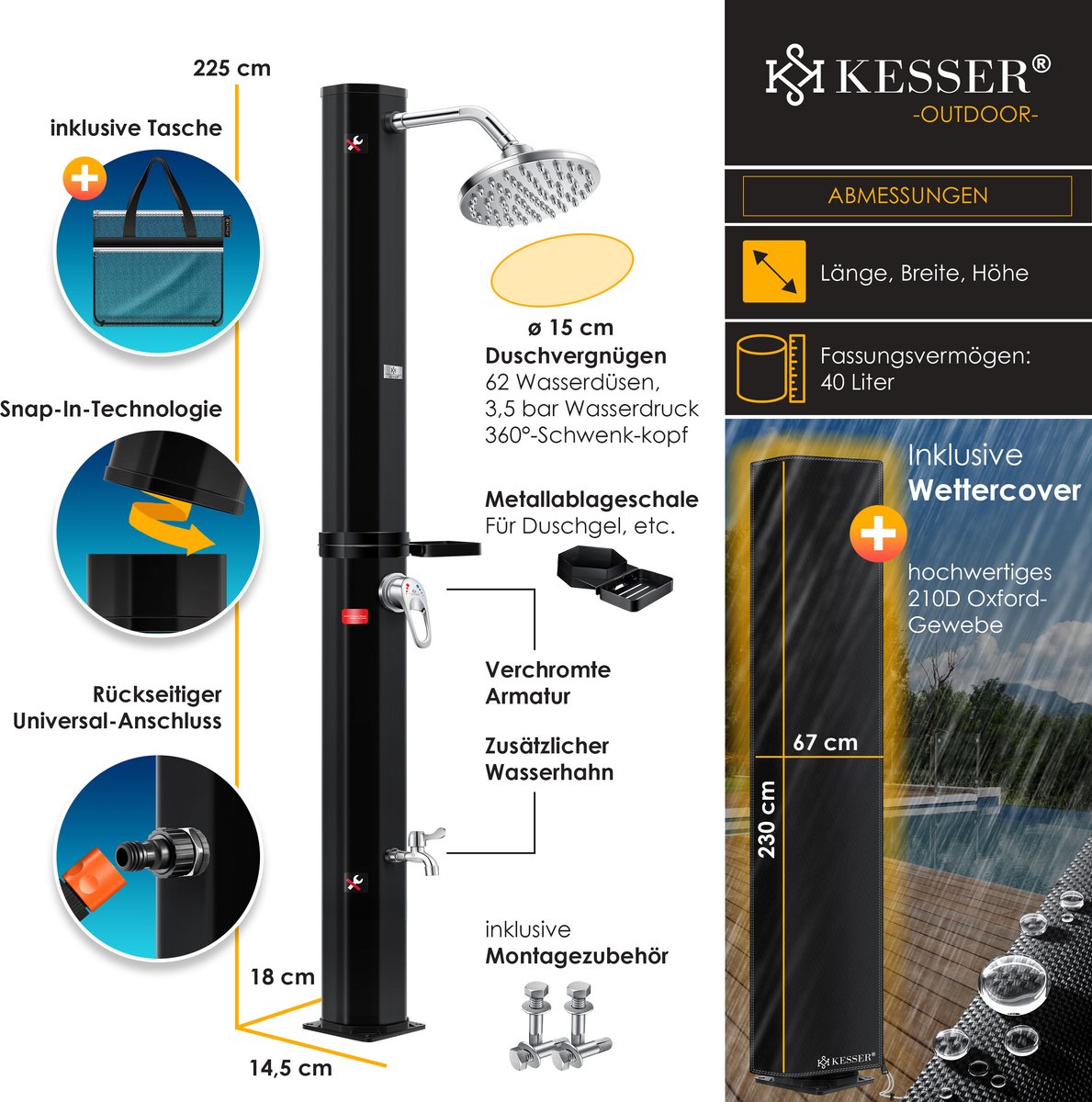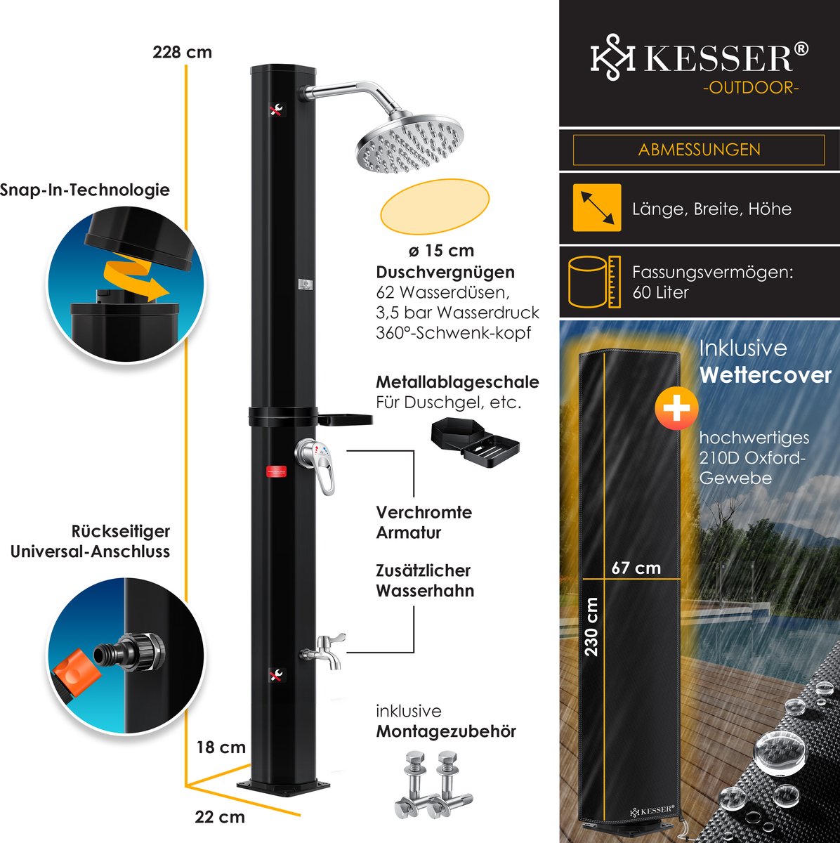 KESSER® Zonnedouche 40-60 Liter Zonne Tuindouche Geïntegreerde metalen douchebak| Warm water | Max. 60°C | Incl. Beschermhoes | Geen stroomaansluiting | Zwembaddouche Camping | Regendouchkop en Kraan | Tuinslangaansluiting
