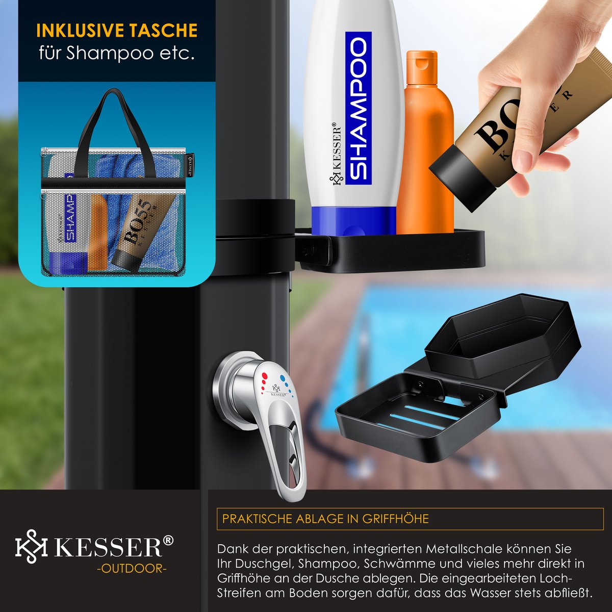 KESSER Zonne Tuindouche - Energiebesparend, draaibare douchekop 180°, geïntegreerde voetdouche, UV-bestendig materiaal en extra bescherming met een beschermhoes