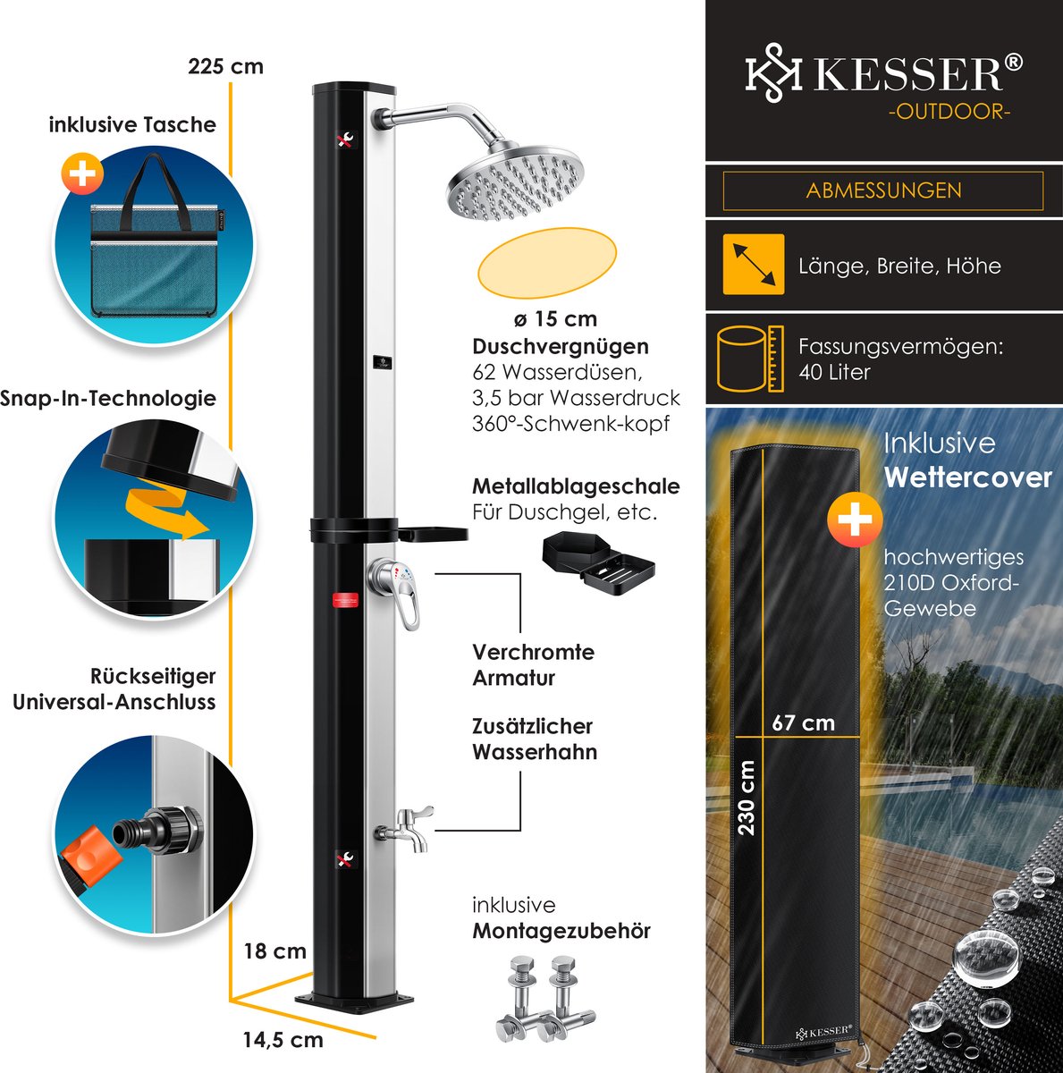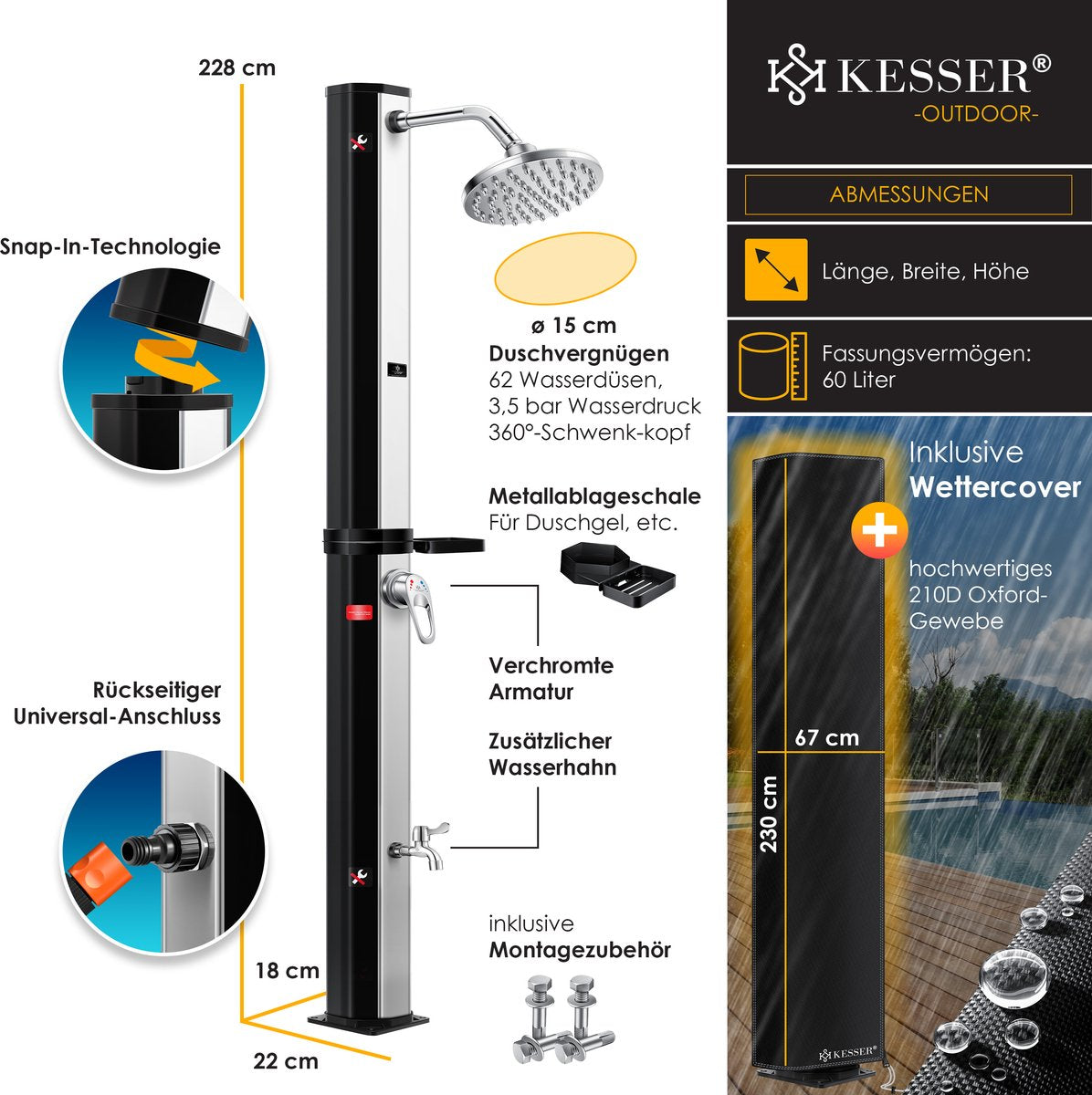 KESSER® Zonnedouche 40-60 Liter Zonne Tuindouche Geïntegreerde metalen douchebak| Warm water | Max. 60°C | Incl. Beschermhoes | Geen stroomaansluiting | Zwembaddouche Camping | Regendouchkop en Kraan | Tuinslangaansluiting