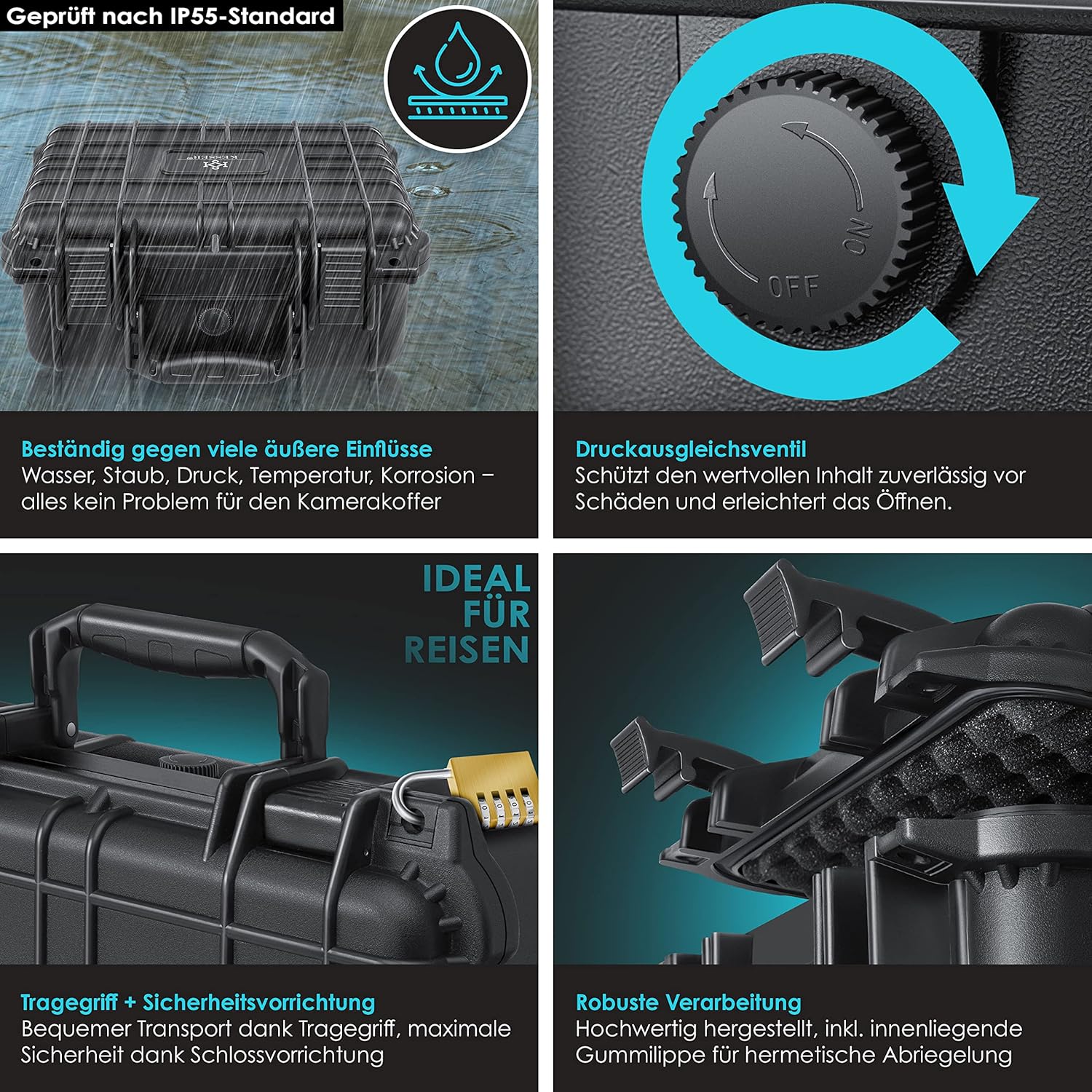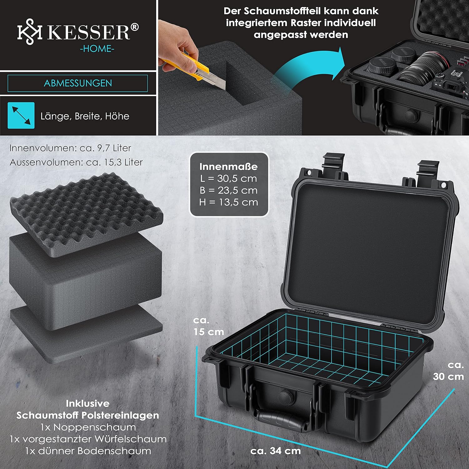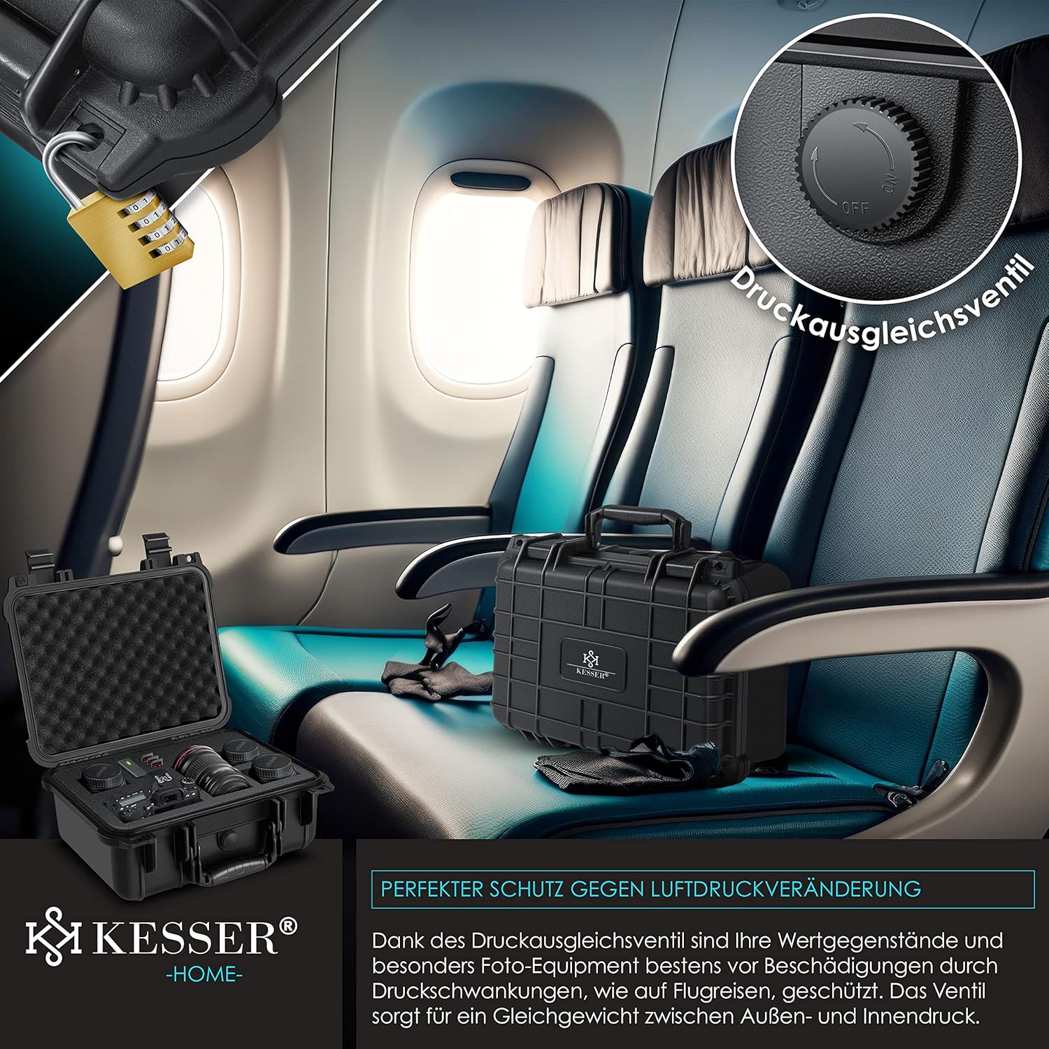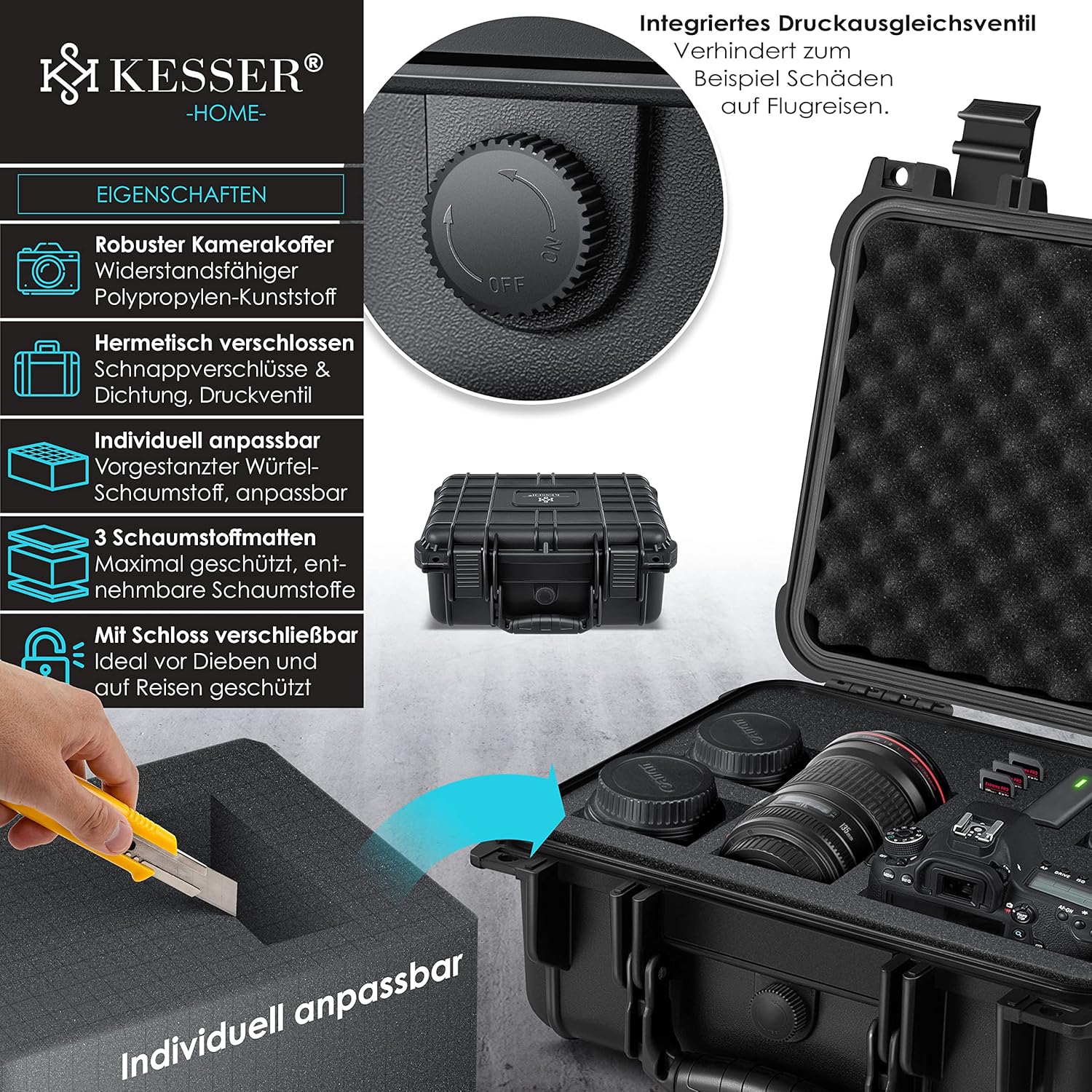 KESSER® Camerakoffer, uniseks aanpasbaar, waterdicht, universele koffer, outdoor, weerbestendig, stofdicht, koffer, fotokoffer met inleg voor cameralenzen en accessoires, zwart, Praktisch