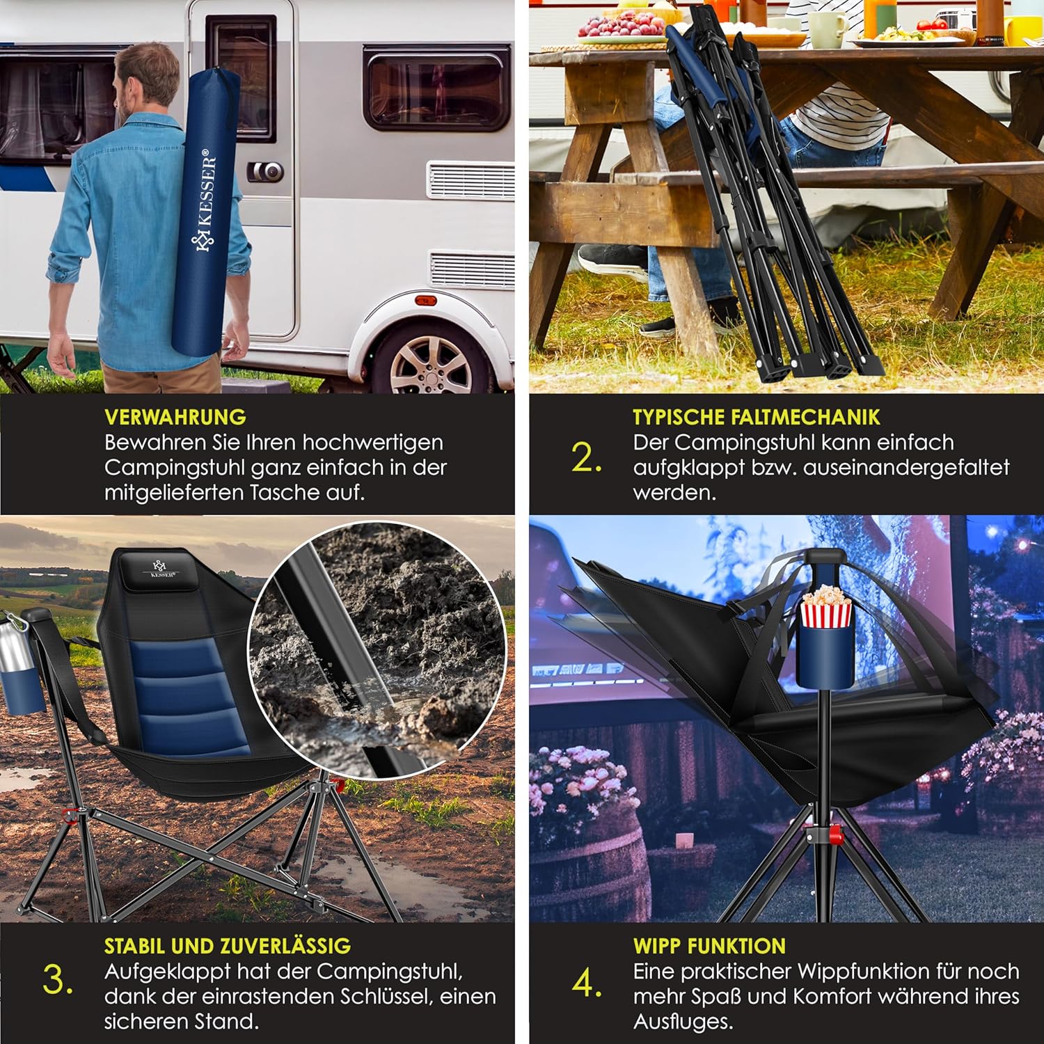 Veelzijdig inzetbaar: de KESSER campingstoel is de ideale metgezel voor al je outdoor-avonturen. Of het nu op de camping, bij een picknick of festival is, deze veelzijdige reisstoel biedt je altijd het beste comfort en flexibiliteit om met volle teugen van je outdoor-ervaringen te genieten.