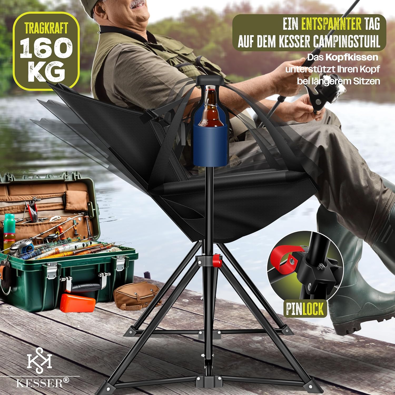 Maximaal comfort voor je buitenavonturen: de KESSER campingstoel biedt met zijn opklapbare kussen en de kantelfunctie buitengewoon comfort, ook bij langere sessies buitenshuis. Het ergonomisch vormgegeven kussen ondersteunt je hoofd en nek, wat vooral bij lange kampeeravonden of outdoor-evenementen een voordeel is.