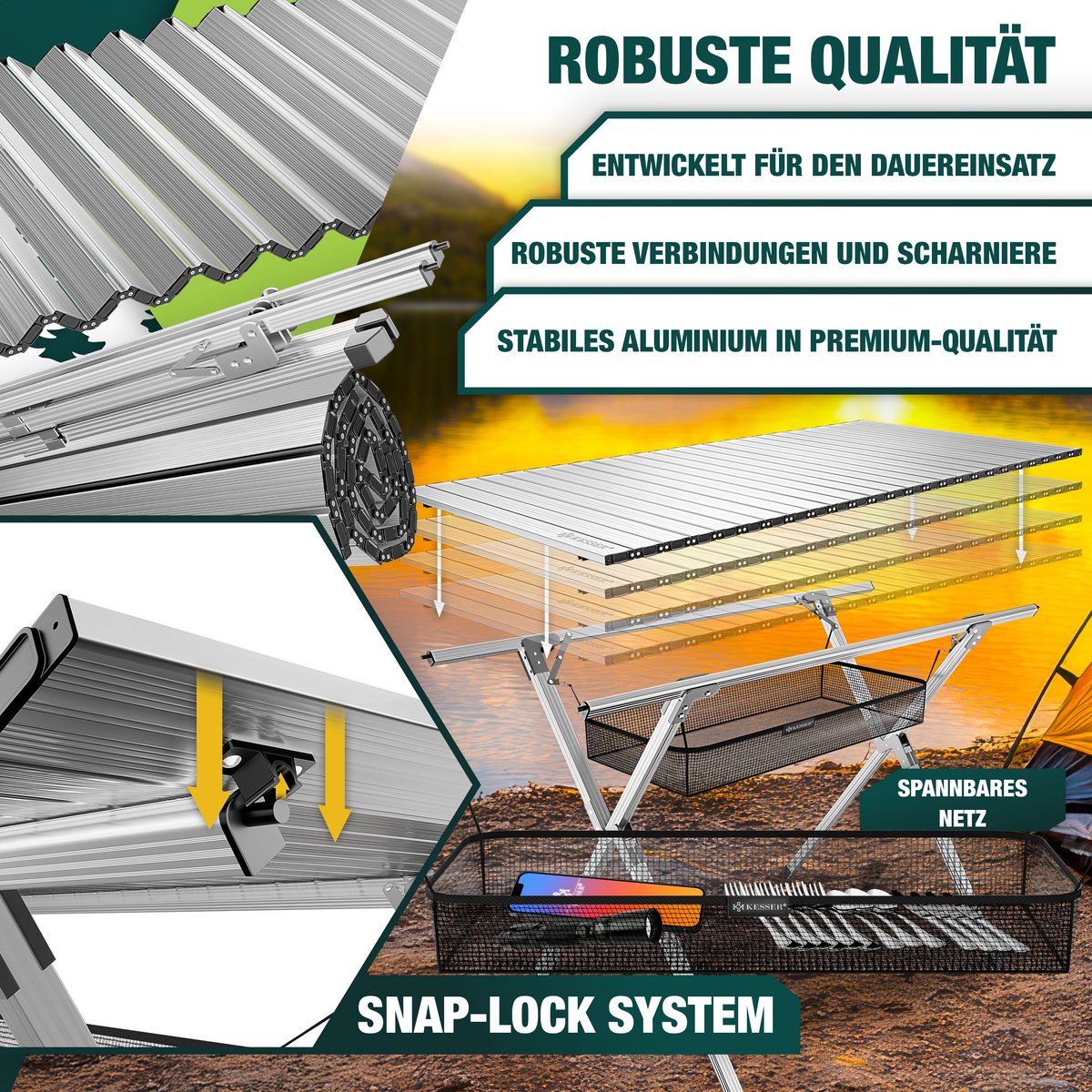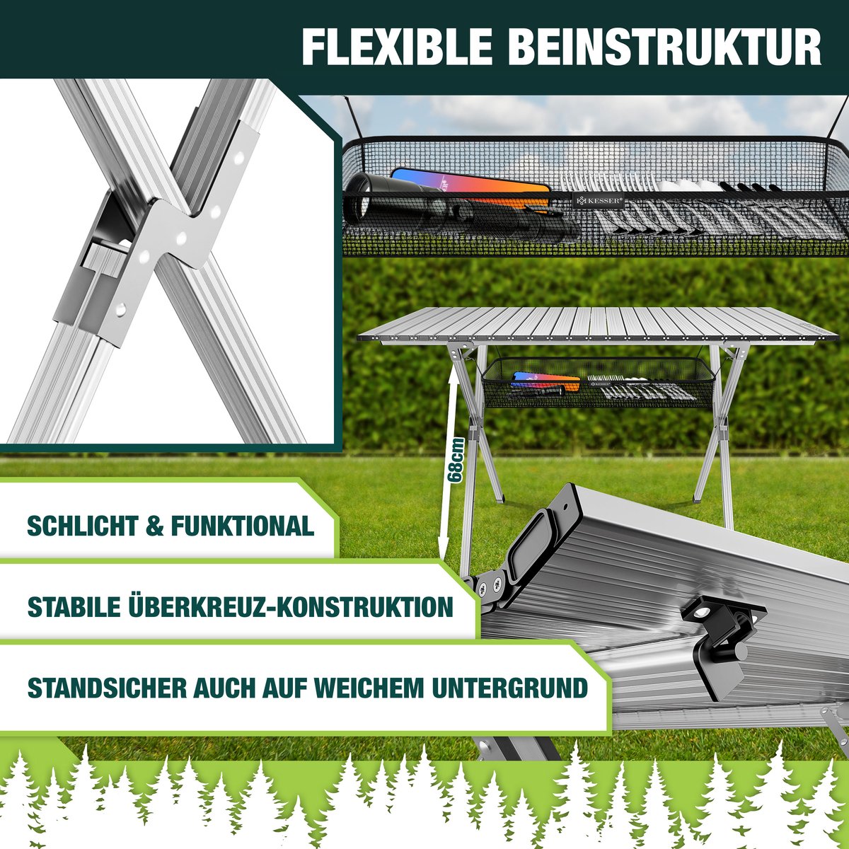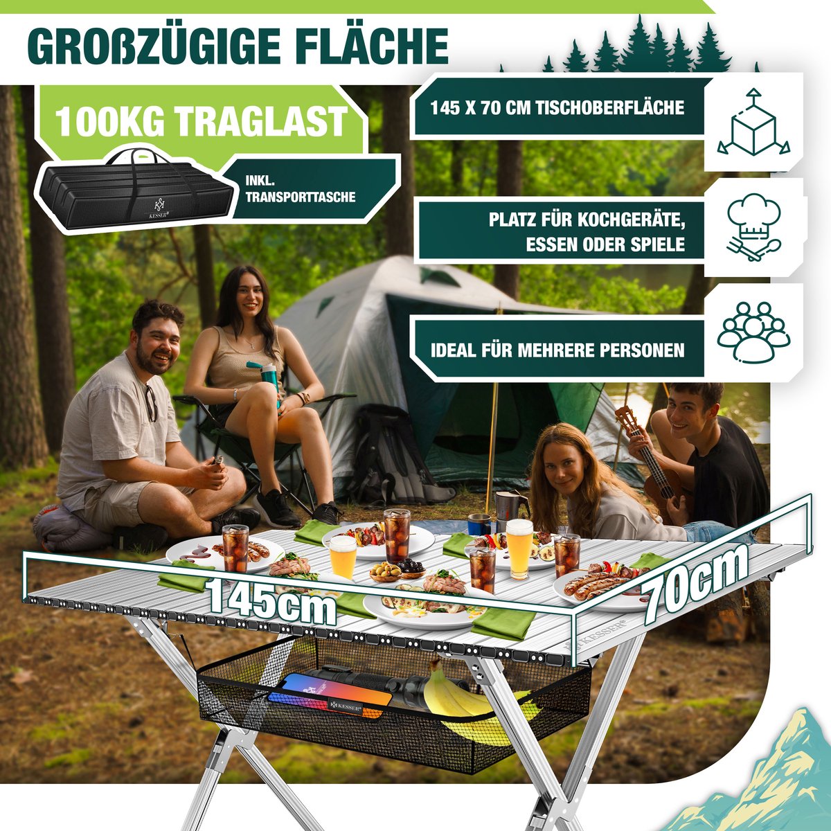 KESSER® Campingtafel 145×70 cm | Aluminium | Weerbestendig | Ultralicht & inklapbaar met draagtas – ideaal voor kamperen, tuin & outdoor-avonturen