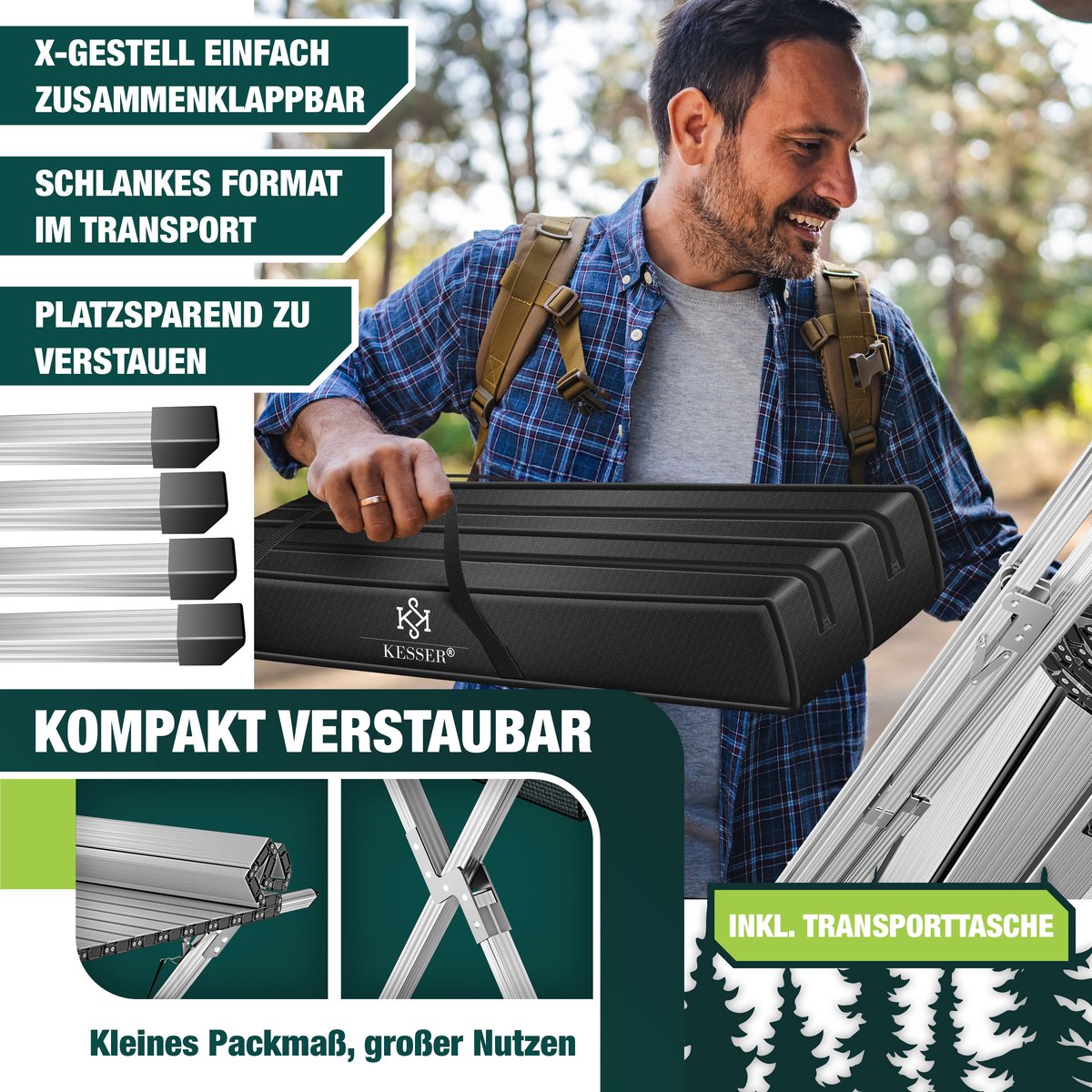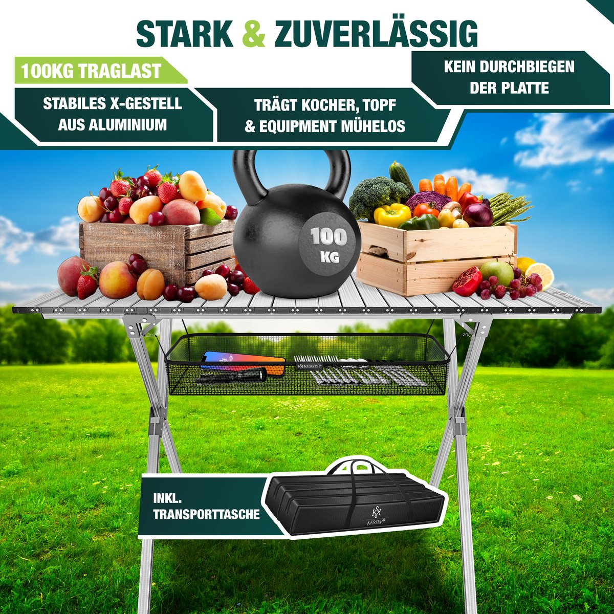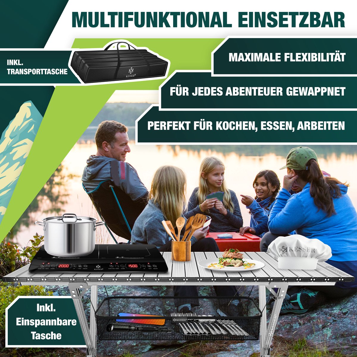 KESSER® Campingtafel 145×70 cm | Aluminium | Weerbestendig | Ultralicht & inklapbaar met draagtas – ideaal voor kamperen, tuin & outdoor-avonturen