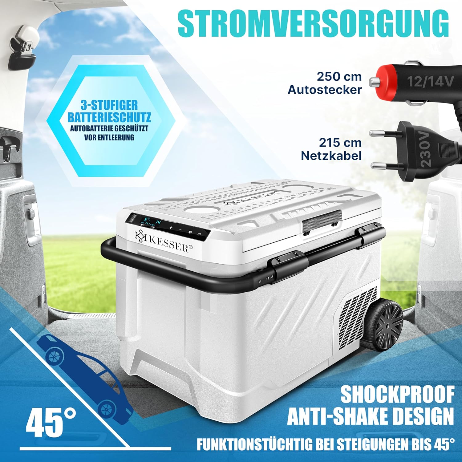 Ontdek de veelzijdige elektrische compressorkoelbox met een ruime capaciteit van 61 liter en dual zone koeling. Deze koelbox heeft een vriesfunctie tot -20 °C en een koelvak tot 0 °C perfect voor al uw avonturen. Bedien de koelbox moeiteloos via het gebruiksvriendelijke led-touchdisplay en geniet van schokbestendigheid zelfs bij een helling van 45 graden. Met de max- en eco-koelmodus kunt u snel of efficiënt koelen terwijl de 3-traps batterijbescherming zorgt voor een betrouwbare werking. De stille werking met slechts 45 dB maakt deze koelbox ideaal voor elke situatie van kamperen tot barbecues. Geschikt voor zowel AC- als DC-voeding met een dual stekker voor gebruik thuis of in de auto. Ook compatibel met zonne- en powerstations voor extra gemak. Met een magnetisch snap-to-close deksel voor veilige opslag. Gewoon perfect voor visuitstapjes kamperen en meer!