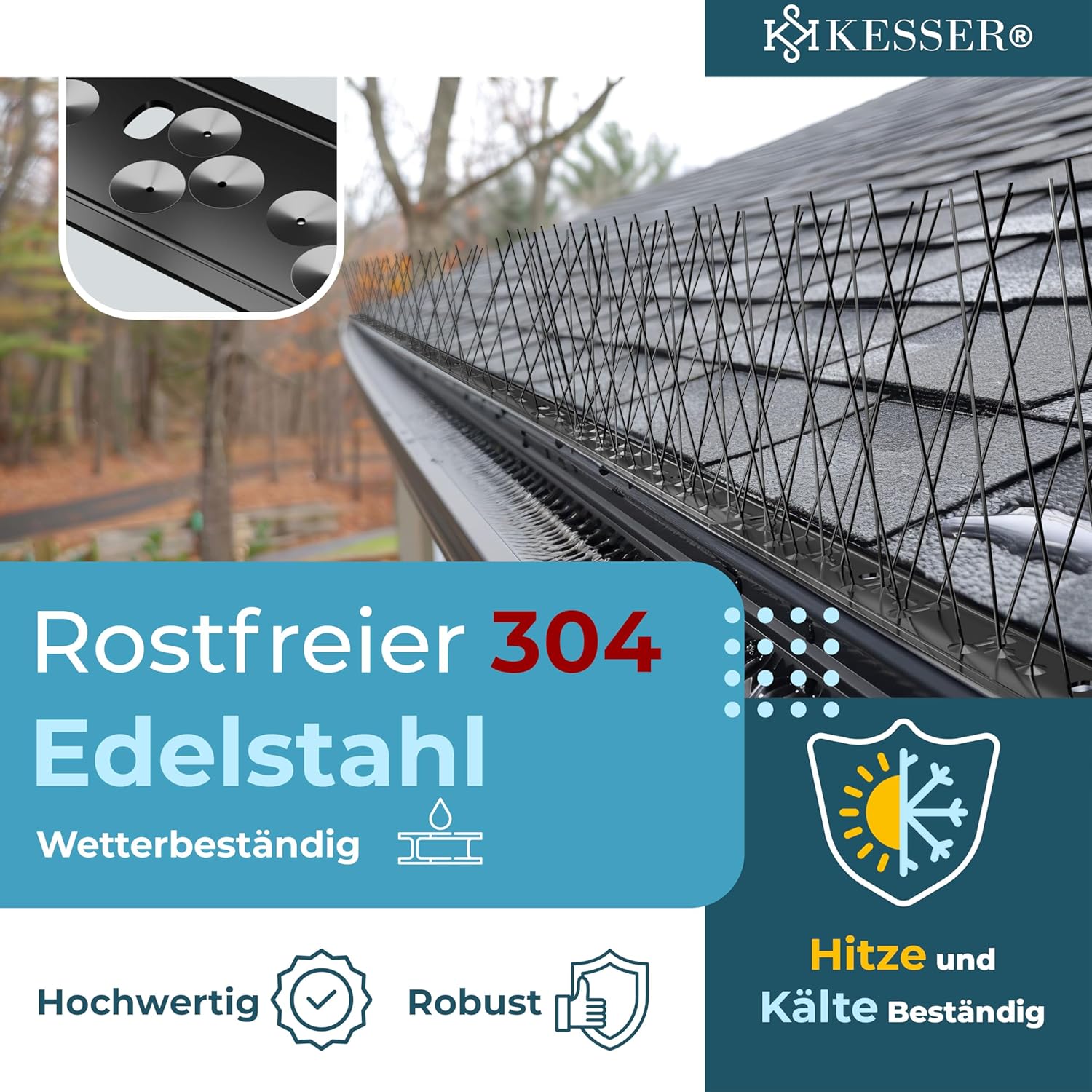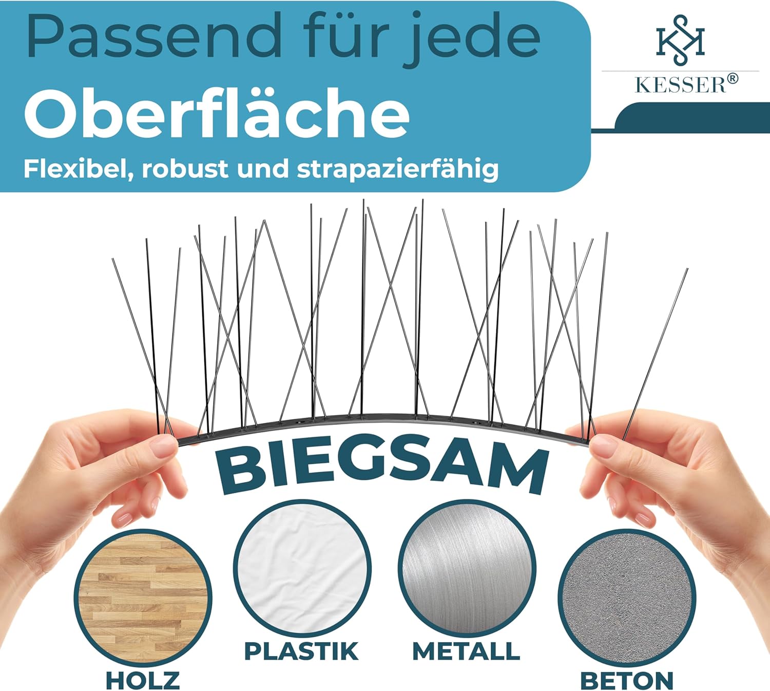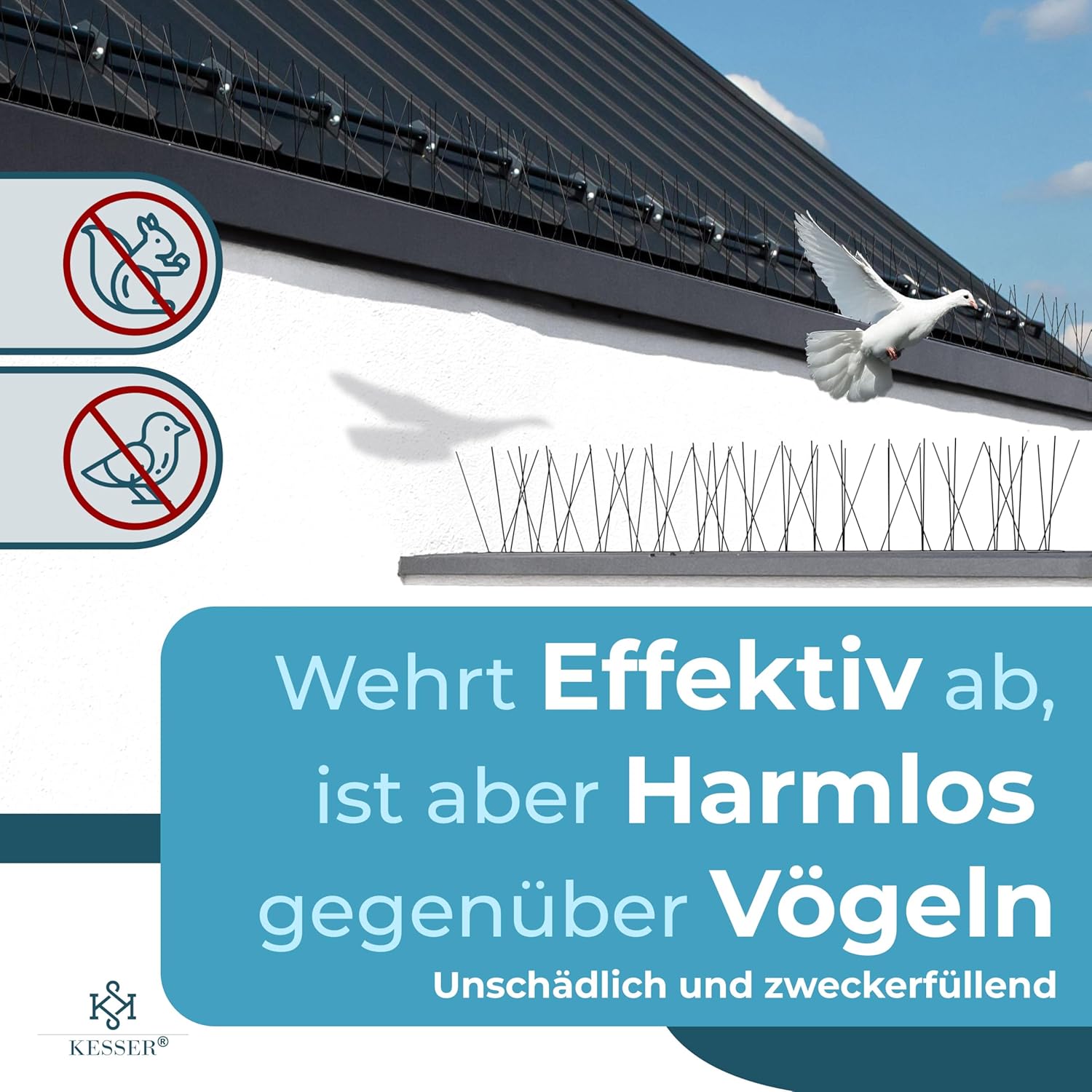 KESSER® Duivenafweer, vogelafweer, 2 m spikes, vogel/duivenverschrikker, 304 roestvrij staal, effectieve bescherming tegen duiven en vogels, voor balkon, dak, raam en tuin, vogelafschrikking, spiesen