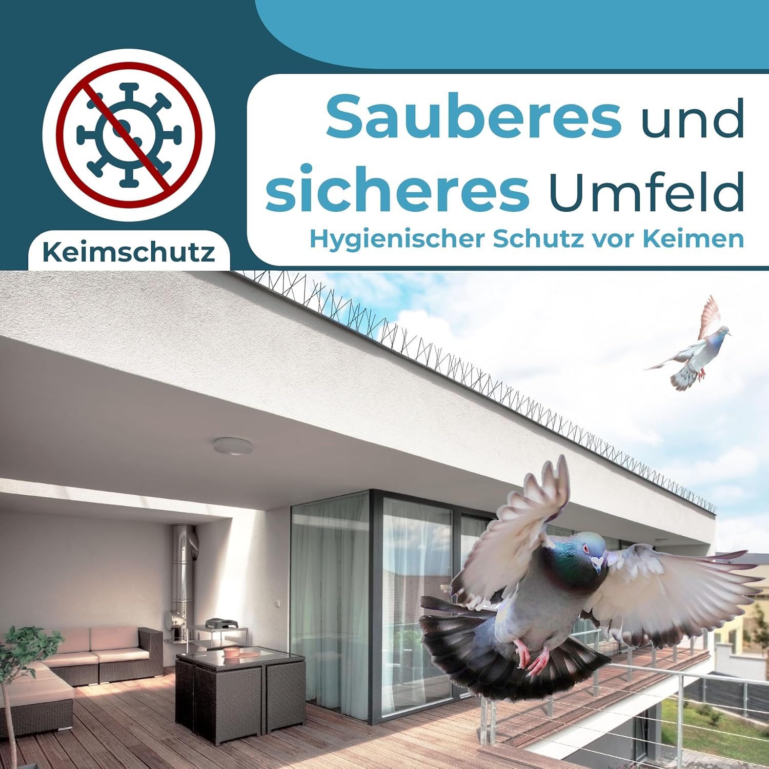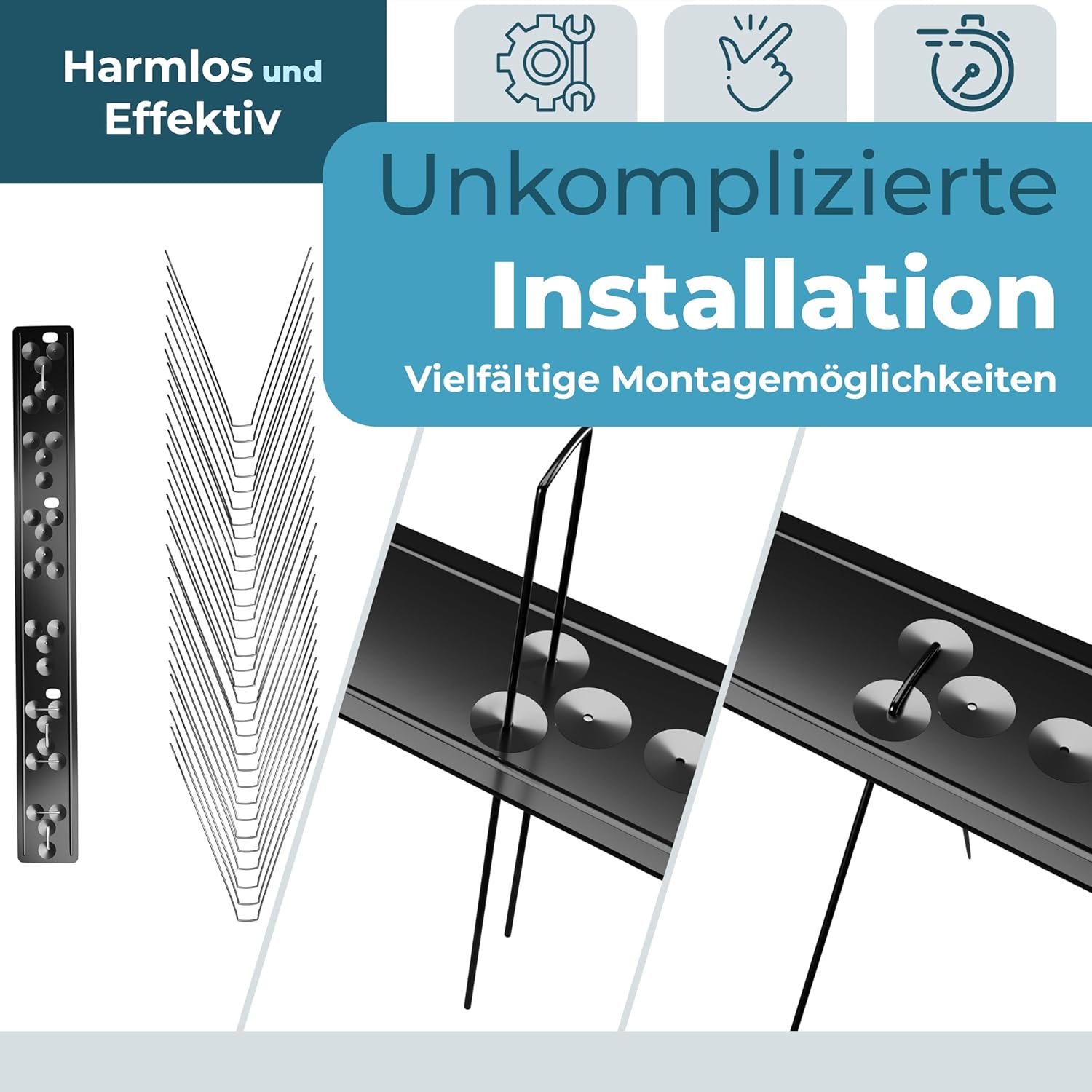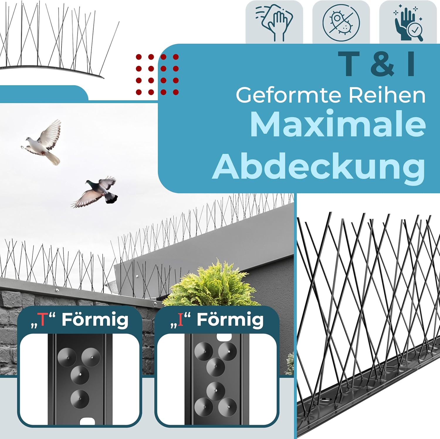 • Volledige bescherming tegen duiven, kraaien en andere vogels, geheel zonder chemicaliën of stroom. Ideaal voor balkon, dakuitsteeksel, vensterbank, omheining en meer. Door T- en I-vormige spikes maximale oppervlaktedekking voor privé- en commercieel gebruik – 100% diervriendelijk en effectief.