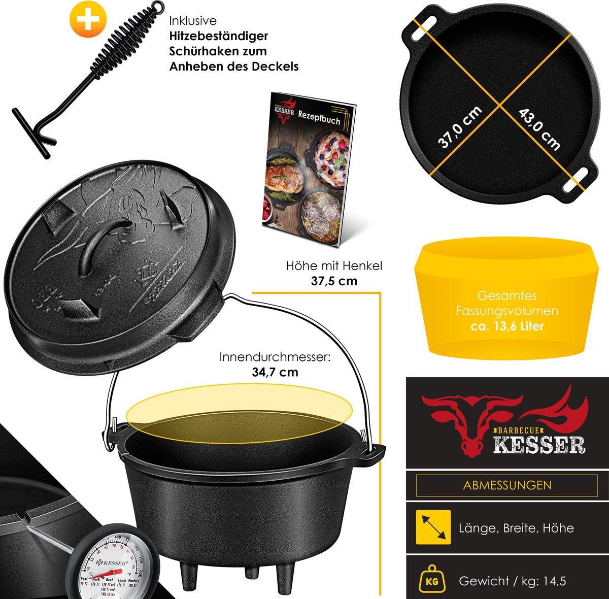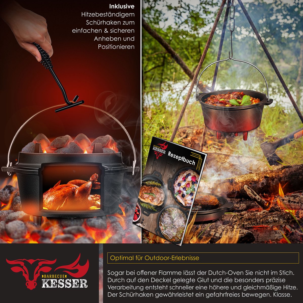 KESSER Premium Dutch Oven BBQ van gietijzer met hittebestendige pook, deksel met draaghandvat en grote capaciteit