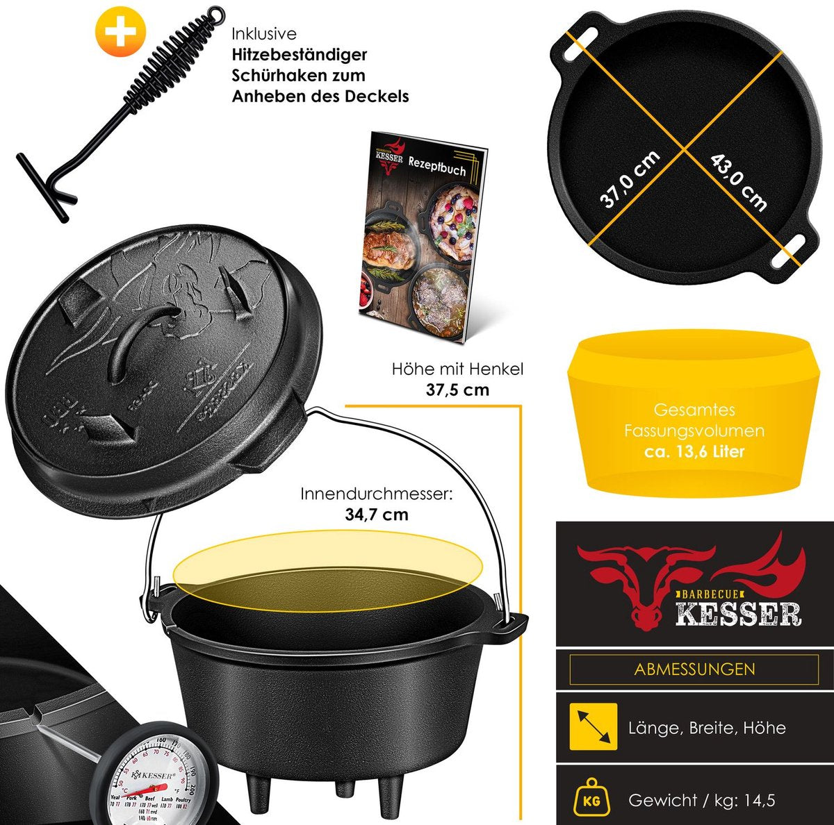 KESSER® Dutch Oven Set - 13,6L - Vuurpan - Stoofpan - Gietijzeren pan