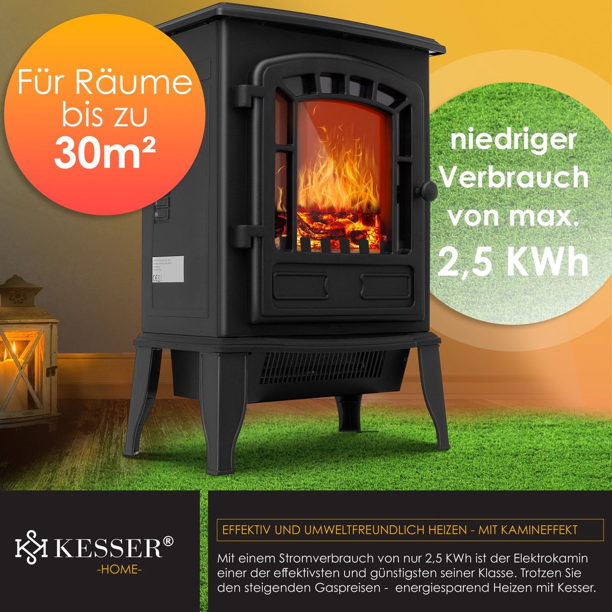 Met onze vrijstaande haard van KESSER hoeft u het niet zonder haard te stellen, ook als u in uw huis of appartement niet de voorwaarden voor een verwarmingshaard of tegelkachel heeft.Onze kachels werken elektrisch en produceren daarom geen echte vlammen, maar onze bedrieglijk echt ontworpen dummy hout binnenin lijkt verwarrend veel op een normaal vuur.Bovendien is er het voordeel dat er geen as of vuil wordt geproduceerd, zodat je geen schoonmaakwerk hoeft te doen.Een echte open haard gebruikt ook echt hout, wat weer extra opslagruimte vereist.