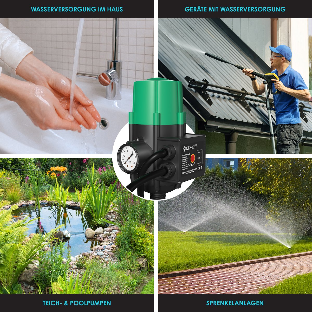 KESSER pompsturing bewaakt de waterdruk dankzij automatisch in- en uitschakelen en constante waterdruk, elimineert het effect van drukpieken