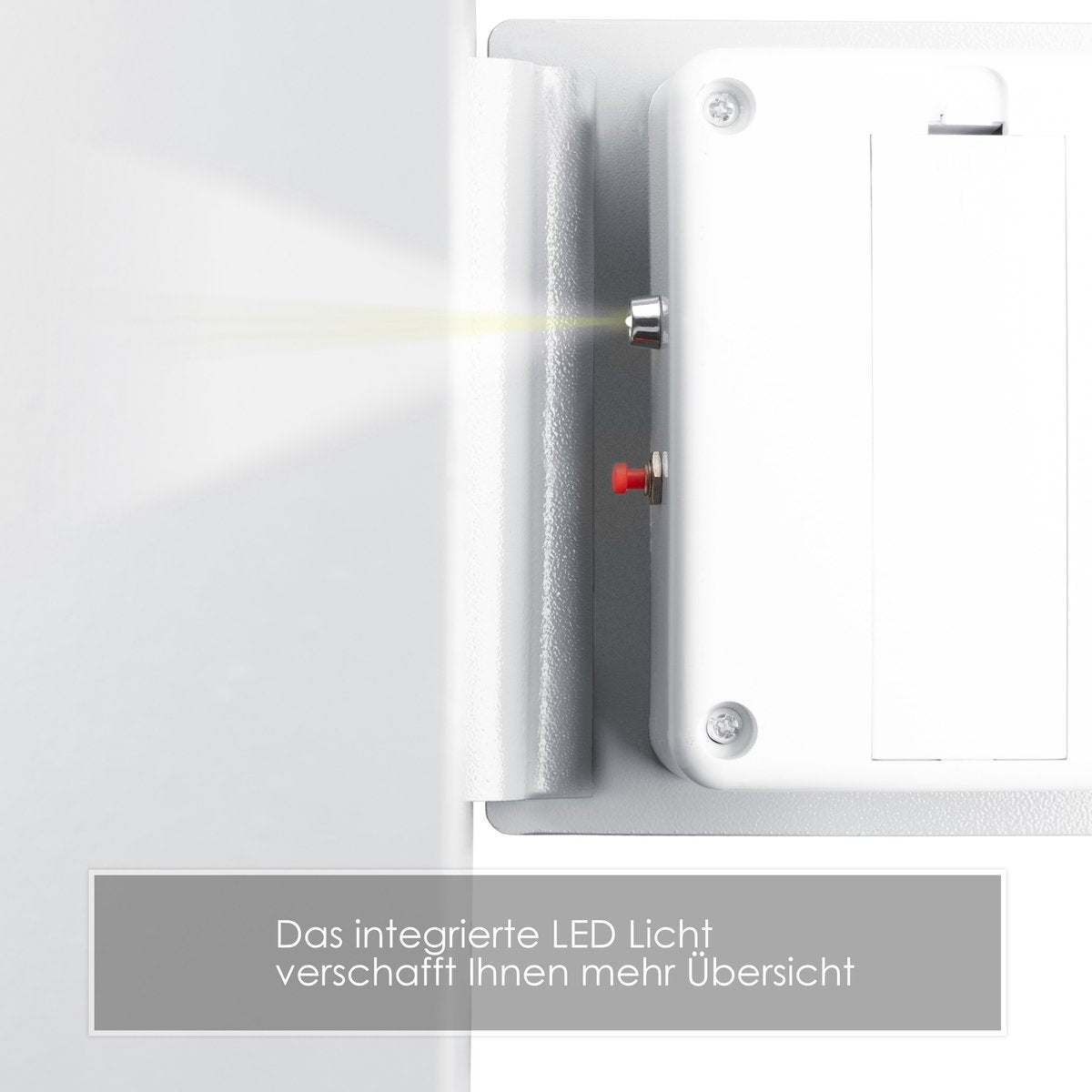 Dankzij de dubbele vergrendeling van de 2 stalen grendels is de stalen deur inbraakwerend. Op het LED-display dat in de kluis is geïntegreerd, kun je op elk moment de laadstatus van de batterijen aflezen en bovendien bevestigt een ander display de juistheid van je pininvoer.