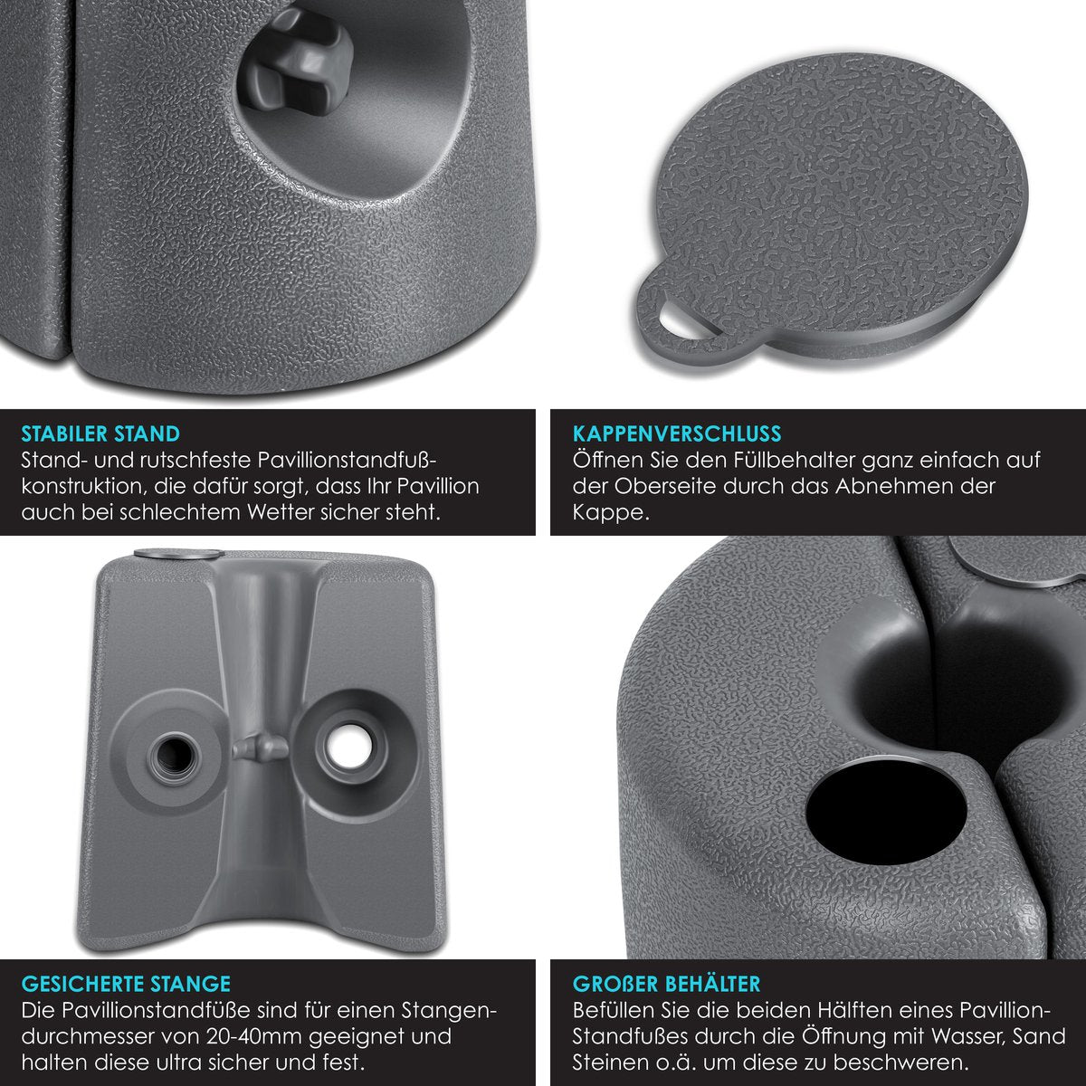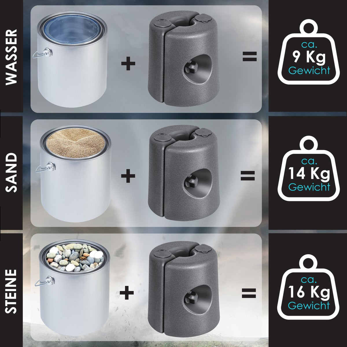 KESSER Paviljoenstandaard Gewichtenset van 4 stuks – voor een ultrastabiel paviljoen bij elk weer, eenvoudige montage, slim vulsysteem met zand, water of stenen, eenvoudig ontwerp en robuust materiaal dat bestand is tegen slecht weer.