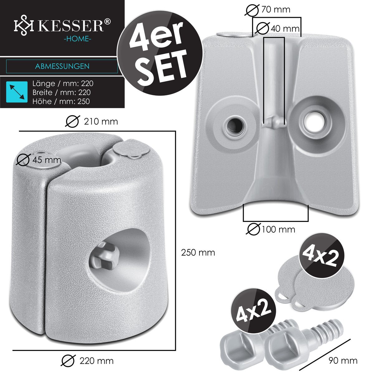 EENVOUDIGE MONTAGE: Met het slimme systeem bevestigt u de KESSER paviljoenstandaard gewichten heel eenvoudig door de twee helften van een standaard om de paviljoenpaal te plaatsen en deze met de meegeleverde schroeven met elkaar te verbinden. De paviljoengewichten kunnen aan elke gangbare paviljoen worden bevestigd met een paaldiameter van 20-40 mm en houden deze ultraveilig en stevig vast.