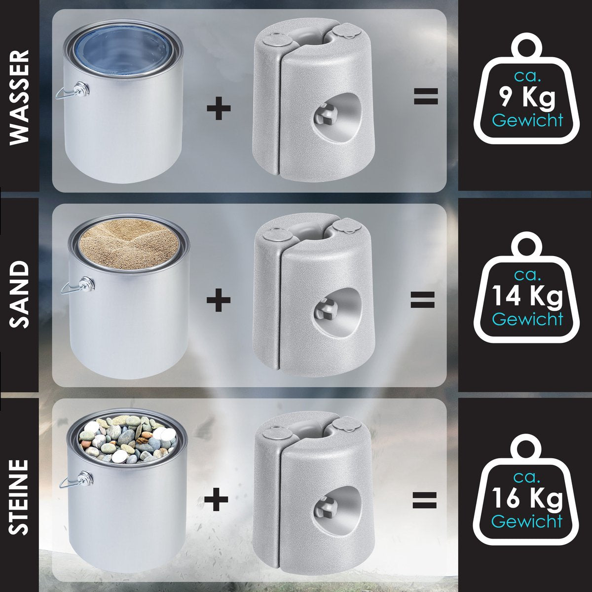 KESSER Paviljoenstandaard Gewichtenset van 4 stuks – voor een ultrastabiel paviljoen bij elk weer, eenvoudige montage, slim vulsysteem met zand, water of stenen, eenvoudig ontwerp en robuust materiaal dat bestand is tegen slecht weer.