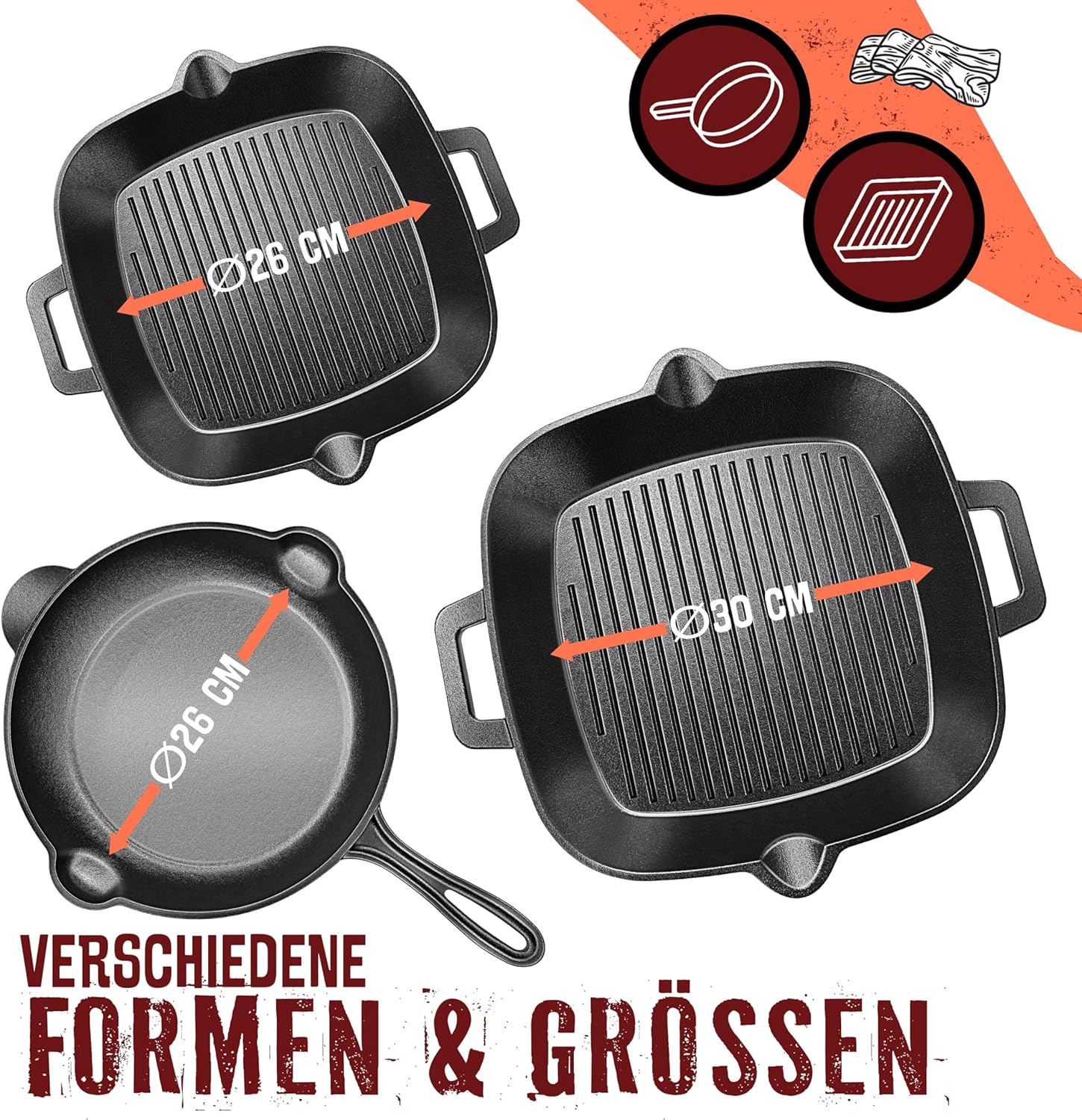 Anti-aanbaklaag en natuurlijke patina: deze gietijzeren pan is voorzien van een ingebrande patina en anti-aanbaklaag, waardoor niets hecht en het koken en reinigen vergemakkelijkt. De patina geeft bovendien een bijzonder roosteraroma bij elke bereidingsstap. Zo lukt elk gerecht moeiteloos en geeft de smaak van je gerechten een ongeëvenaarde diep-aromatische touch die elke maaltijd bijzonder maakt.