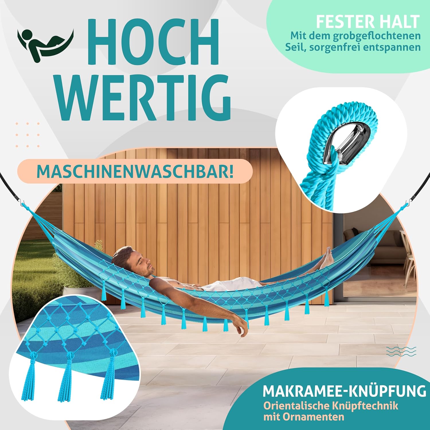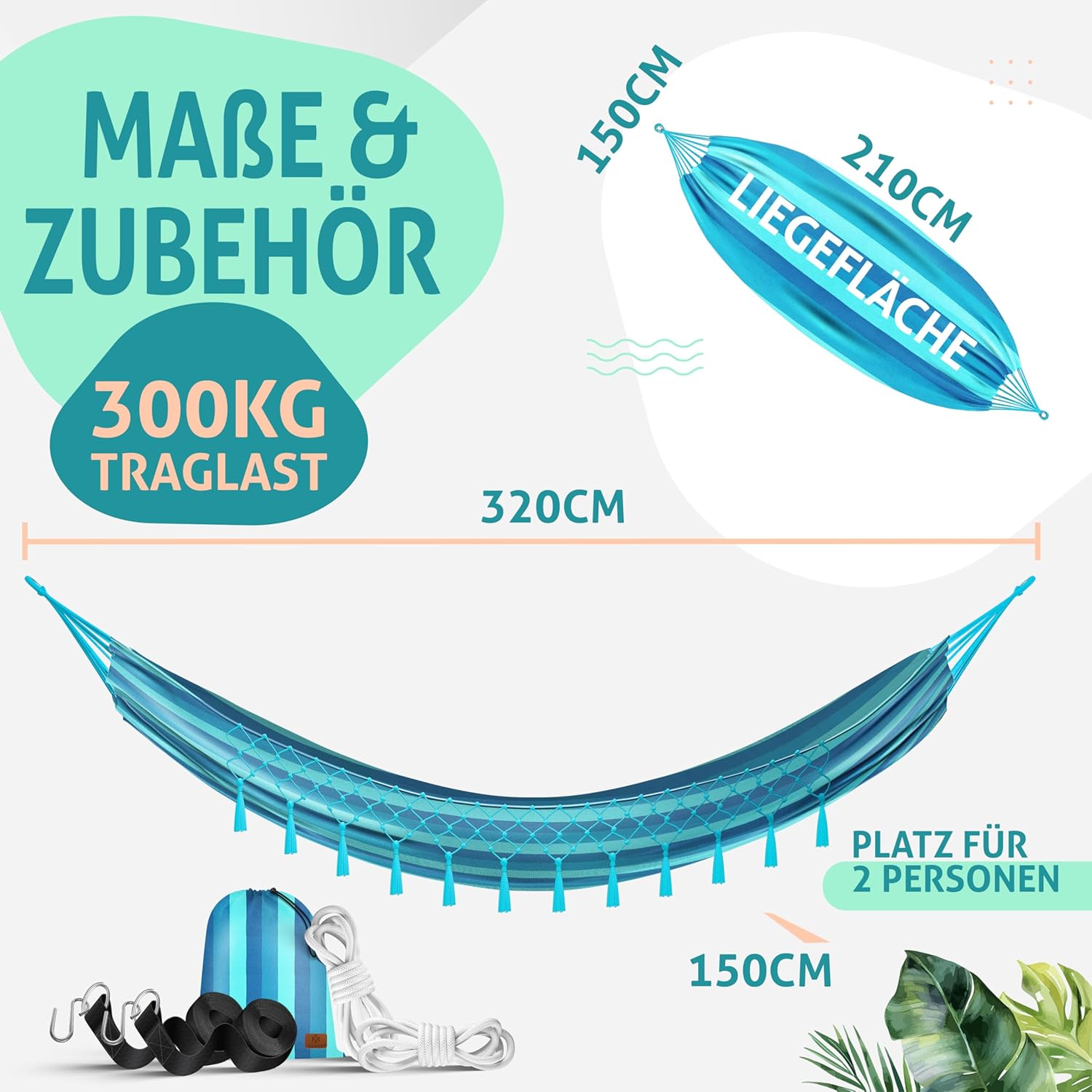 KESSER hangmat van zachte polyester-katoenmix, met robuuste touwen, waterafstotend en ademend, belastbaar tot 300 kg voor binnen- en buitengebruik