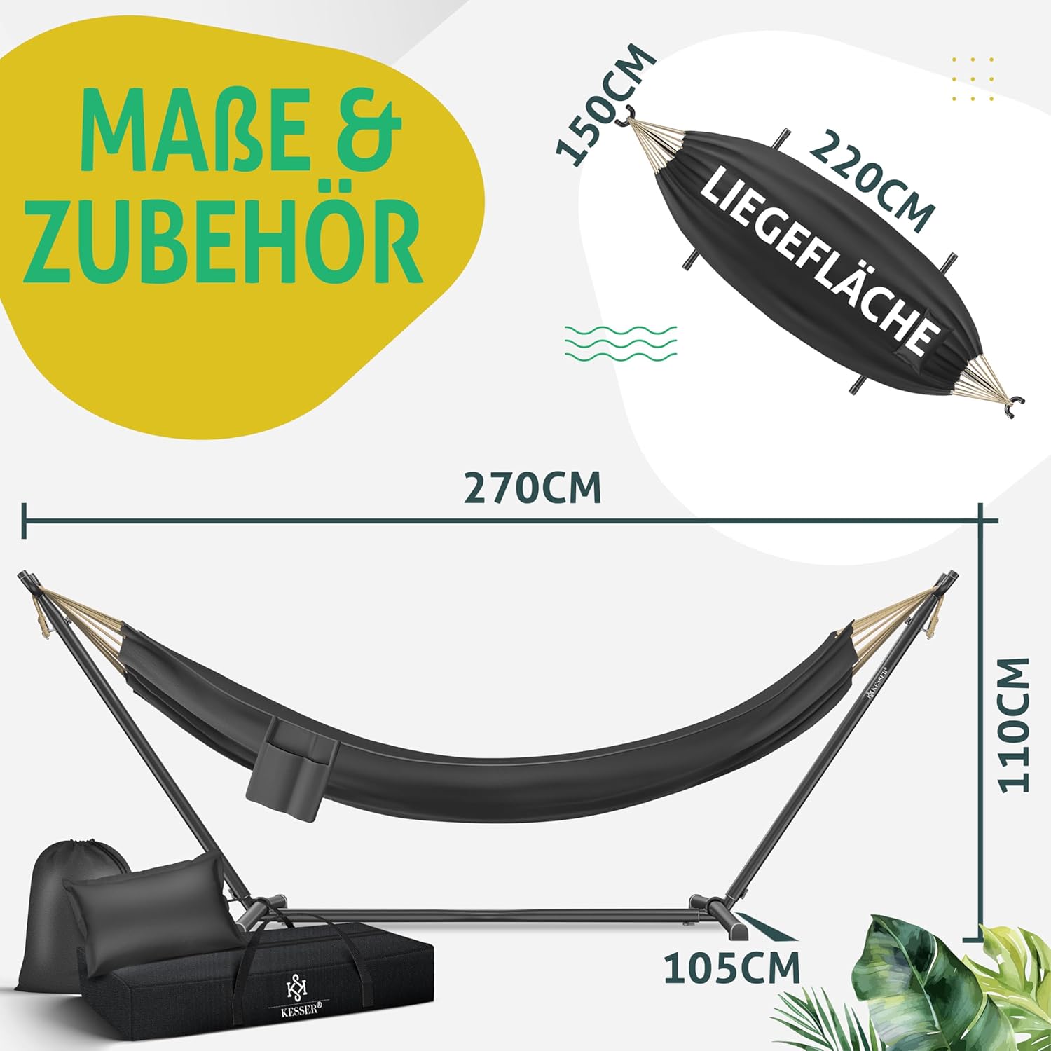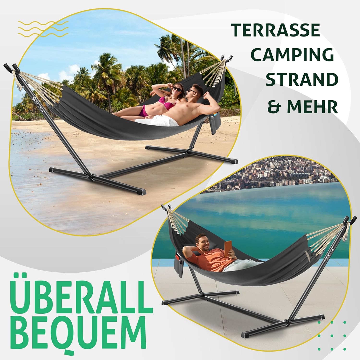 KESSER® XXL Hangmat 2 personen - Tot 200kg - Metalen Frame - Antraciet