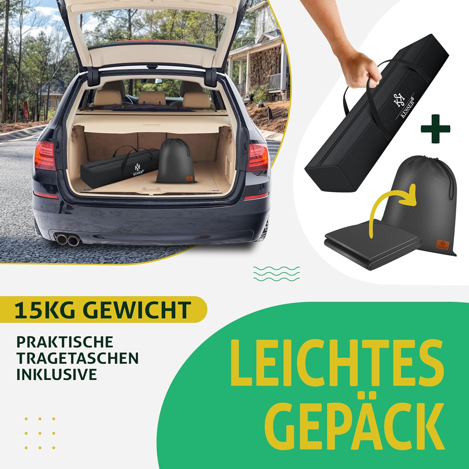 • Voor onderweg: door de eenvoudige en ongecompliceerde demontage kun je de hangmat snel en gemakkelijk opvouwen en in de grote KESSER draagtas en de tas opbergen. Door het lage gewicht van slechts 15 kg kan onze ligstoel gemakkelijk overal mee naartoe worden genomen. Tijdens je strand- of campingvakantie en op vele andere plaatsen. Zo hoef je je geen zorgen meer te maken over een bevestigingsmogelijkheid.