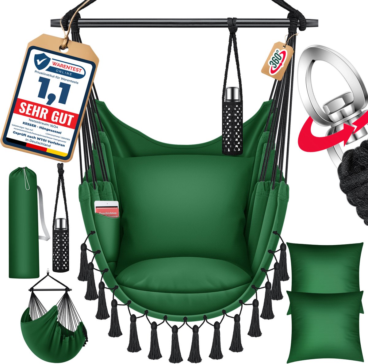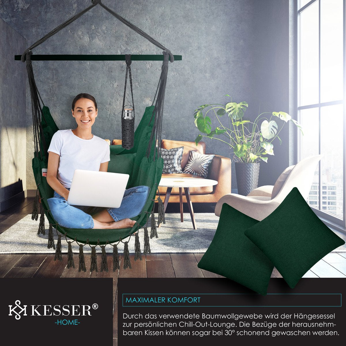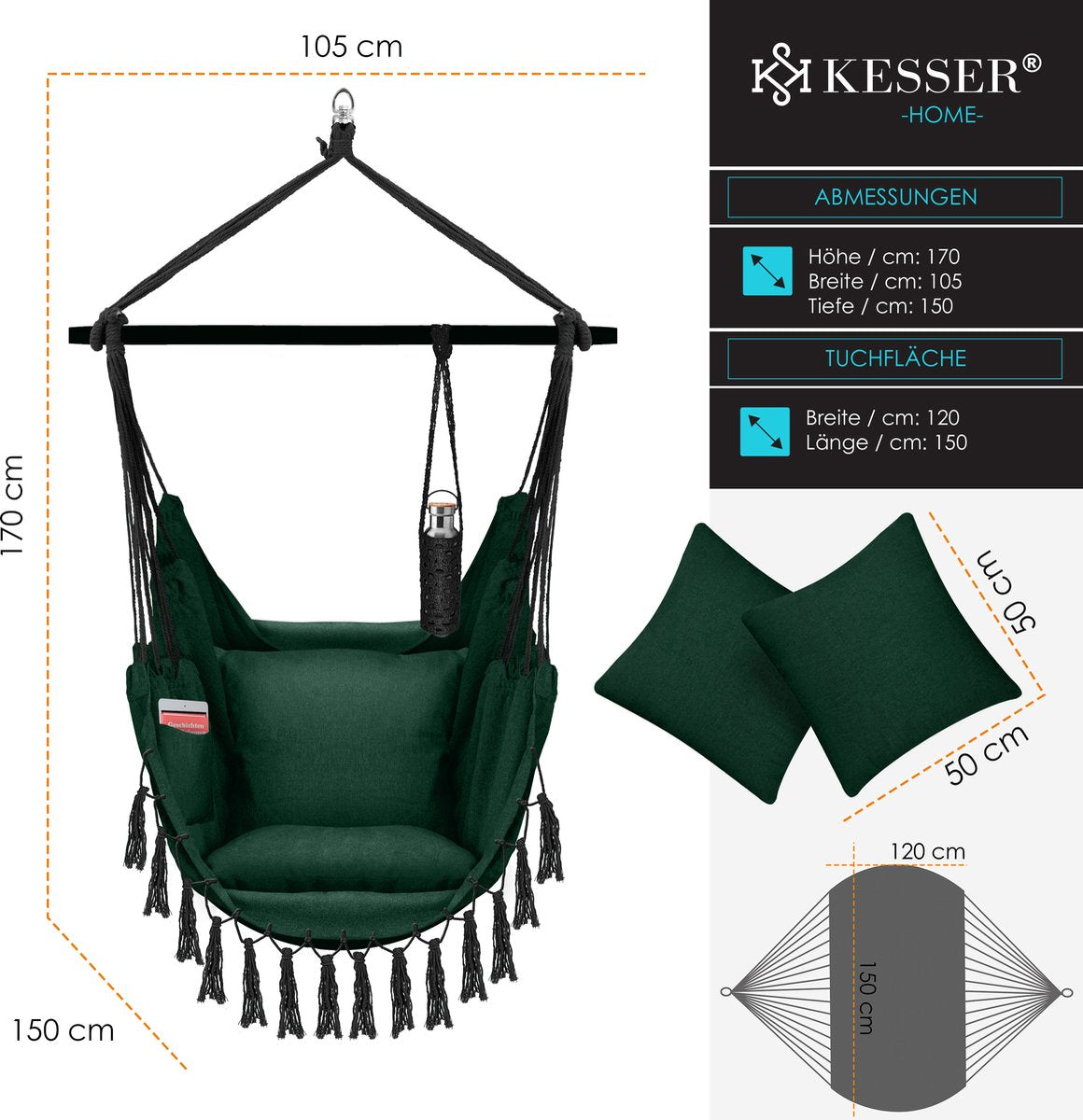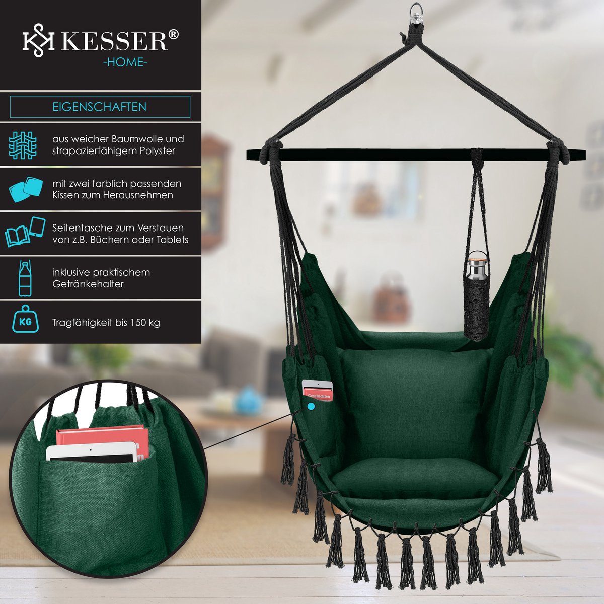 KESSER® Hangstoel met 2 kussens, drankhouder & boekenrek - Safari XXL Hangstoel voor volwassenen & kinderen Hangmat tot 150 kg Hangstoel Ophanging Indoor & Outdoor Wonen & Tuin Terras