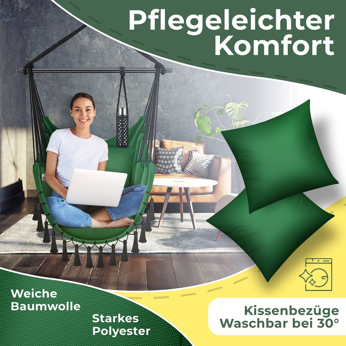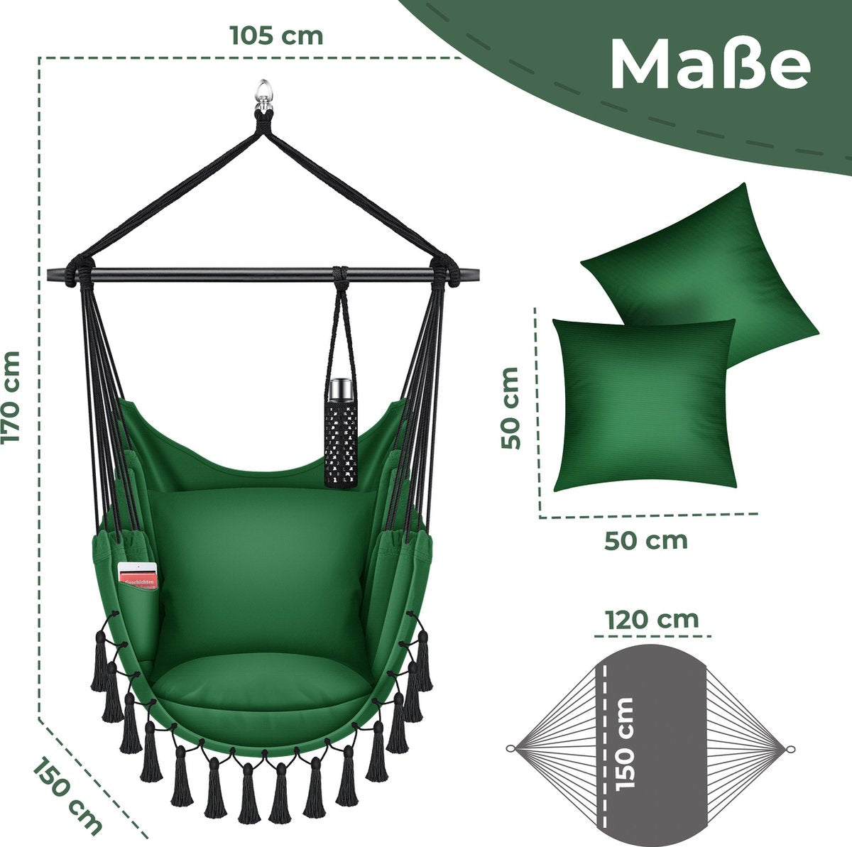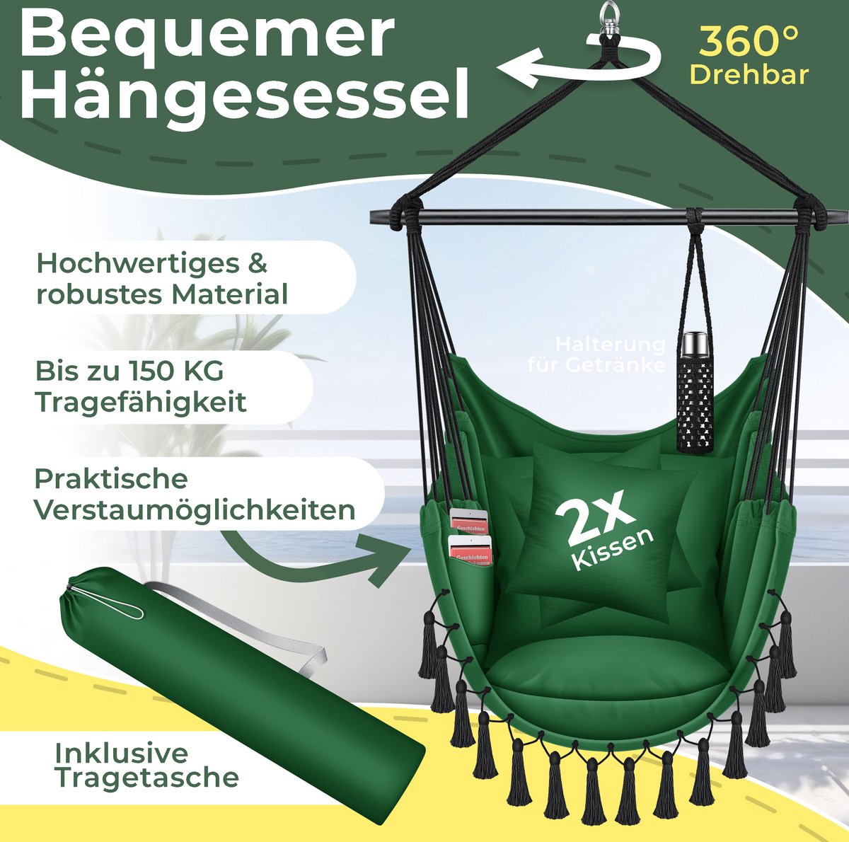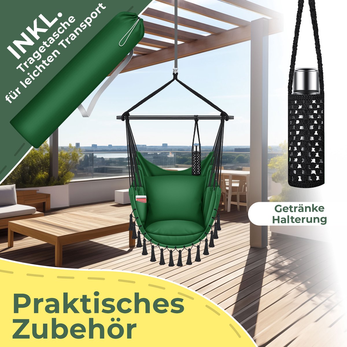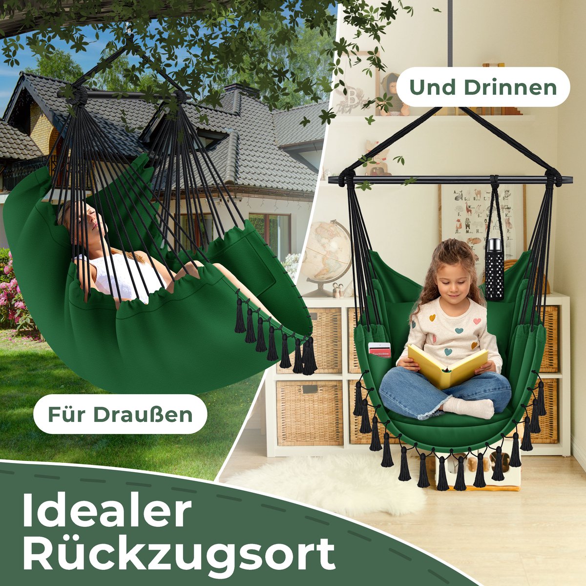 KESSER® Hangstoel met 2 kussens, drankhouder & boekenrek - Safari XXL Hangstoel voor volwassenen & kinderen Hangmat tot 150 kg Hangstoel Ophanging Indoor & Outdoor Wonen & Tuin Terras