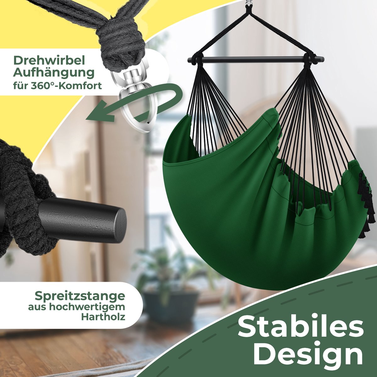 Hangstoel - Binnen & Buiten - Hangschommel - Tot 150kg - Groen - KESSER®