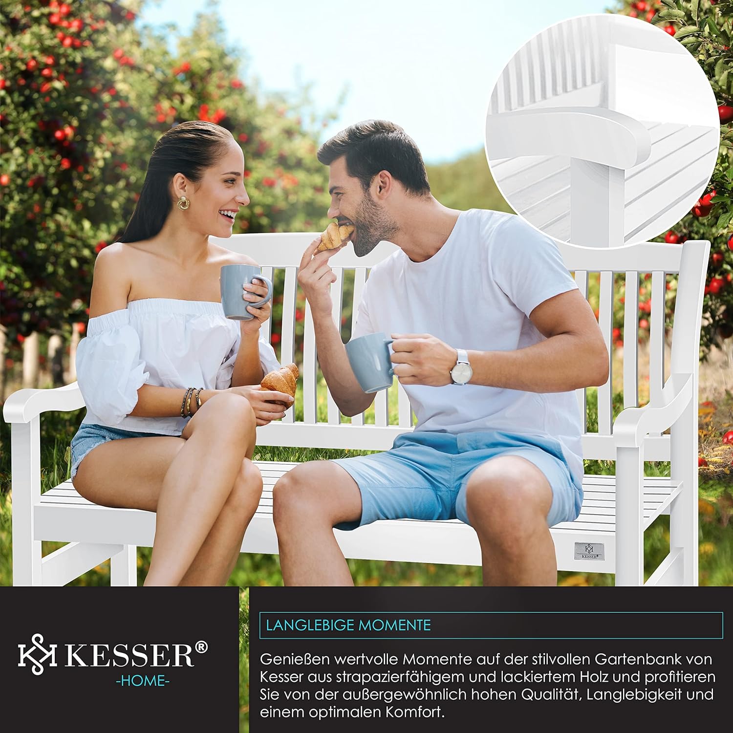 De hoogwaardige en stijlvolle tuinbank van KESSER combineert twee voordelen . Ten eerste is de bank een visueel modern hoogtepunt dat uw tuin net dat beetje extra geeft. Ten tweede dient de parkbank als een praktische zitplaats en transformeert uw tuin in een ontspannend natuurpark . Leun achterover , geniet van het einde van de dag en luister naar het fluiten van de vogels . Geniet van kostbare momenten op de stijlvolle tuinbank van KESSER . Gemaakt van duurzaam , robuust en gelakt hout , profiteert u van de uitzonderlijk hoge kwaliteit , duurzaamheid en optimaal comfort . Dankzij het grofkorrelige hout is de ultrastabiele tuinbank van KESSER aanzienlijk slijtvaster dan conventionele tuinbanken . De extra lak zorgt voor optimale bescherming tegen beschadigingen door slecht weer , krassen en uv-stralen . Gebogen vormen en ergonomische rondingen zorgen niet alleen voor ideaal comfort , maar maken deze hoogwaardige en robuuste tuinbank ook tot een ware lust voor het oog in uw tuin , voor het huis , binnenshuis of in uw serre . Hier vindt u voldoende ruimte voor meerdere personen om van het weer te genieten met koffie en gebak . Maar u kunt ook alleen op de houten bank genieten van mooie momenten . Door het lichte gewicht is de houten bank flexibel verstelbaar , zodat u naar wens direct in de zon of op een schaduwrijk plekje kunt zitten.kan. Met behulp van het meegeleverde montagemateriaal kan de balkonbank zeer eenvoudig in slechts enkele stappen worden gemonteerd . Wanneer u de bank niet gebruikt , hoeft u hem niet af te dekken, omdat het materiaal bovendien weer- en krasbestendig is . Vier solide en stevige poten geven de tuinbank een bijzonder stabiele ondersteuning , zodat de bank niet kan omvallen . Naast de ergonomische rugleuning maken elegante rondingen in de armleuningen de tuinbank compleet . Deze zien er niet alleen elegant uit , maar bieden uw armen ook maximaal comfort . De zitting is sneldrogend , zodat u hem ook na een regenachtige dag snel weer kunt gebruiken .