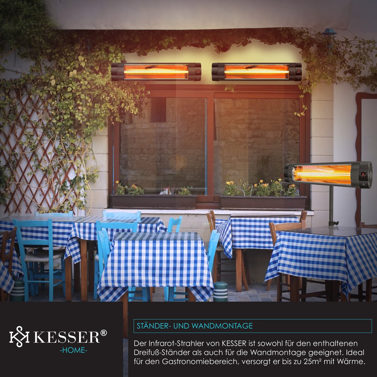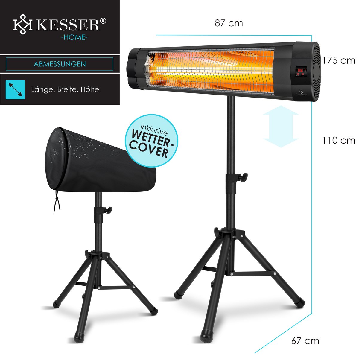 KESSER infraroodstraler met in hoogte verstelbare en robuuste standaard, in 3 stappen instelbare temperatuur, incl. timer, onmiddellijke warmteontwikkeling, efficiënt en beschermend rooster van roestvrij staal.