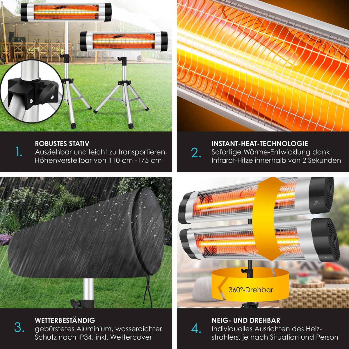 KESSER infraroodstraler met in hoogte verstelbare en robuuste standaard, in 3 stappen instelbare temperatuur, incl. timer, onmiddellijke warmteontwikkeling, efficiënt en beschermend rooster van roestvrij staal.