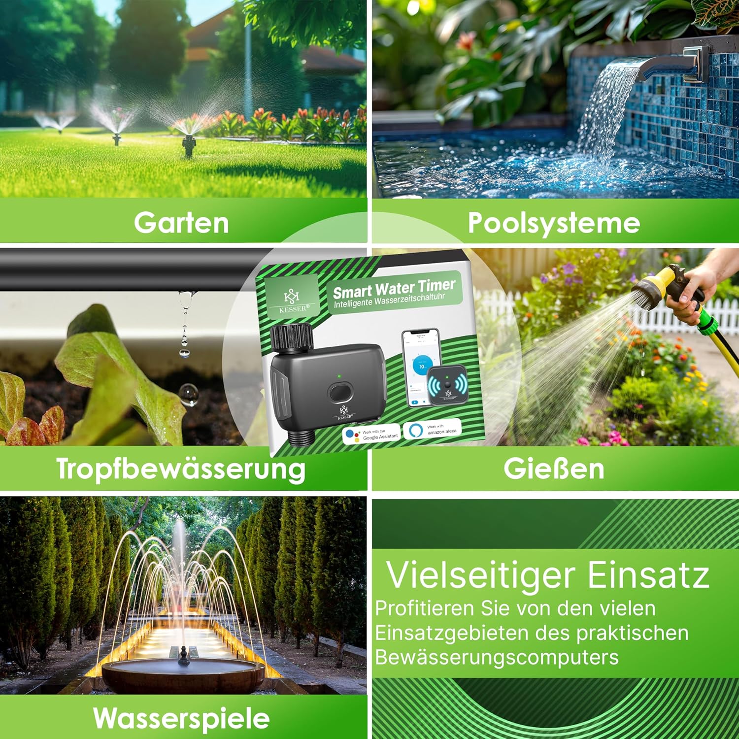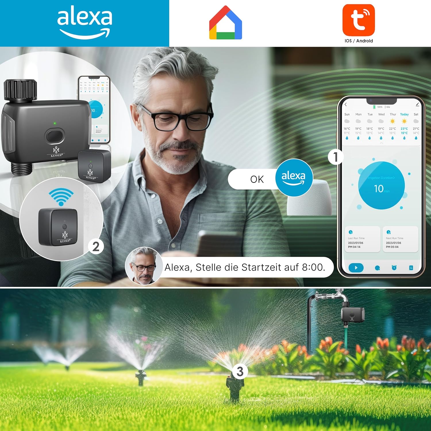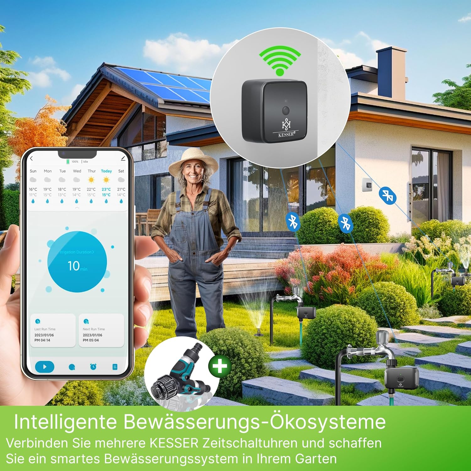 • Innovatieve 360° draaibare aansluiting: de irrigatiecomputer van KESSER is uitgerust met een revolutionaire 360° draaibare aansluiting, die maximale flexibiliteit bij de installatie biedt. Of je hem nu op een kraan, slang of waterreservoir wilt aansluiten, dit innovatieve kenmerk garandeert een moeiteloze aanpassing aan elke situatie.