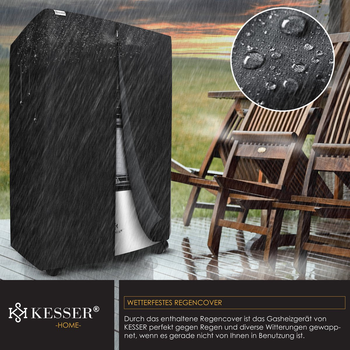 AANGENAME WARMTE INCLUSIEF REGENHOES: Ontspan op koele dagen met een kop warme chocolademelk voor de staande verwarming en geniet van de warmte. Dankzij de afwerking en de verschillende uitvoeringen is uw verwarming ook een visuele blikvanger en past deze perfect bij uw huis. Met de gasverwarmingsoven kunt u eenvoudig een aangename temperatuur bereiken in ruimtes van 60 m²-70 m². Het gasverwarmingstoestel is perfect beschermd tegen regen en verschillende weersomstandigheden met de regenhoes.