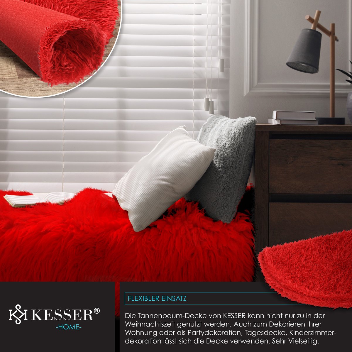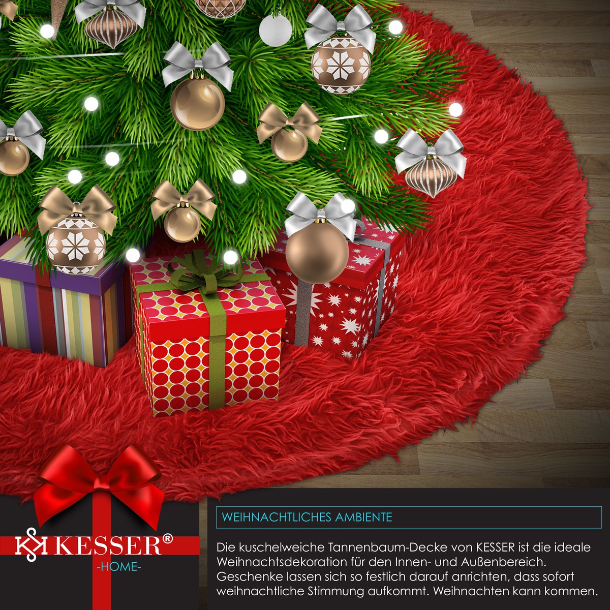 De knuffelzachte kerstboomdeken van KESSER is de ideale kerstdecoratie voor binnen en buiten.Hier kunnen de cadeaus feestelijk gerangschikt worden zodat er een leuke kerstsfeer ontstaat.- Kerstmis kan komen!