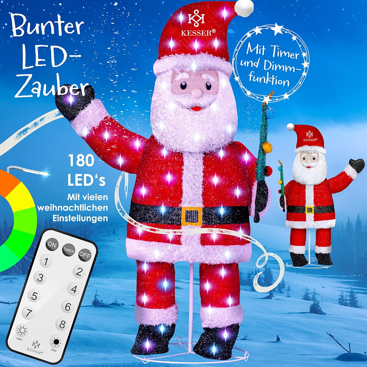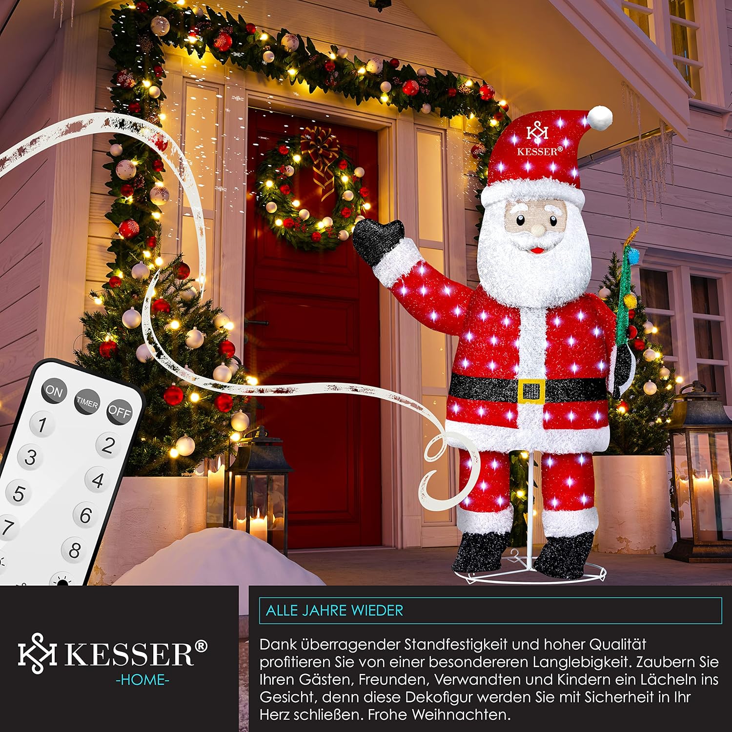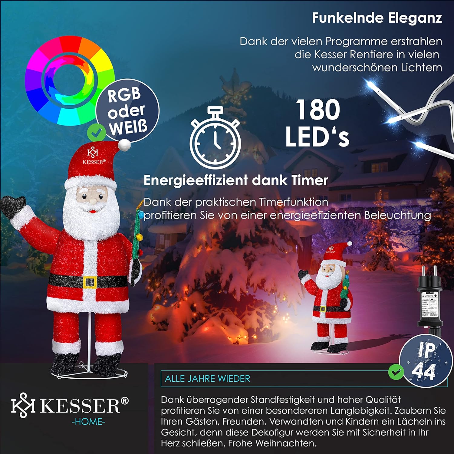 De hoogwaardige led-kerstfiguur van Kesser geeft je terras, balkon, tuin of interieur een magische kerstsfeer. Naast de optisch hoogwaardige ledlampen en het glinsterende materiaal overtuigt de kerstdecoratie ook door verschillende modi. Gebruik zachte, langzame lichtovergangen of snelle RGB-sprongen en zorg zo voor een bijzondere sfeer in je tuin.