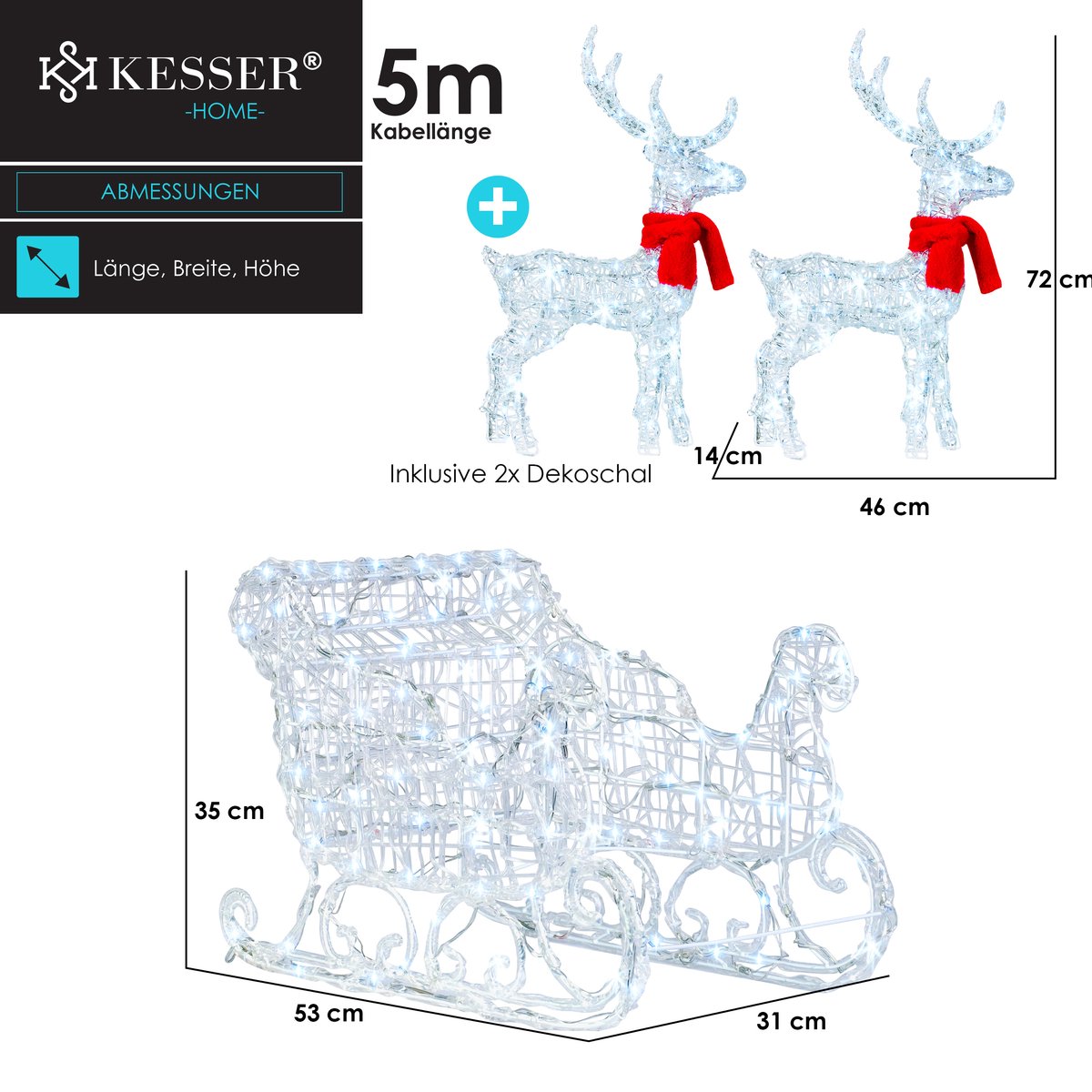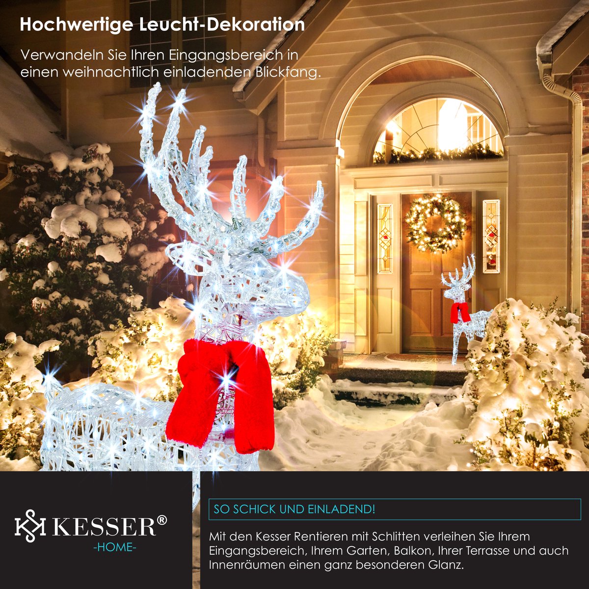 KESSER LED rendier, LED's van hoge kwaliteit met continue verlichting en knipperende LED's, IP44 voeding voor buitengebruik, stabiele voeten en stevige constructie, flexibel dankzij kabellengte, incl. timer, afstandsbediening.