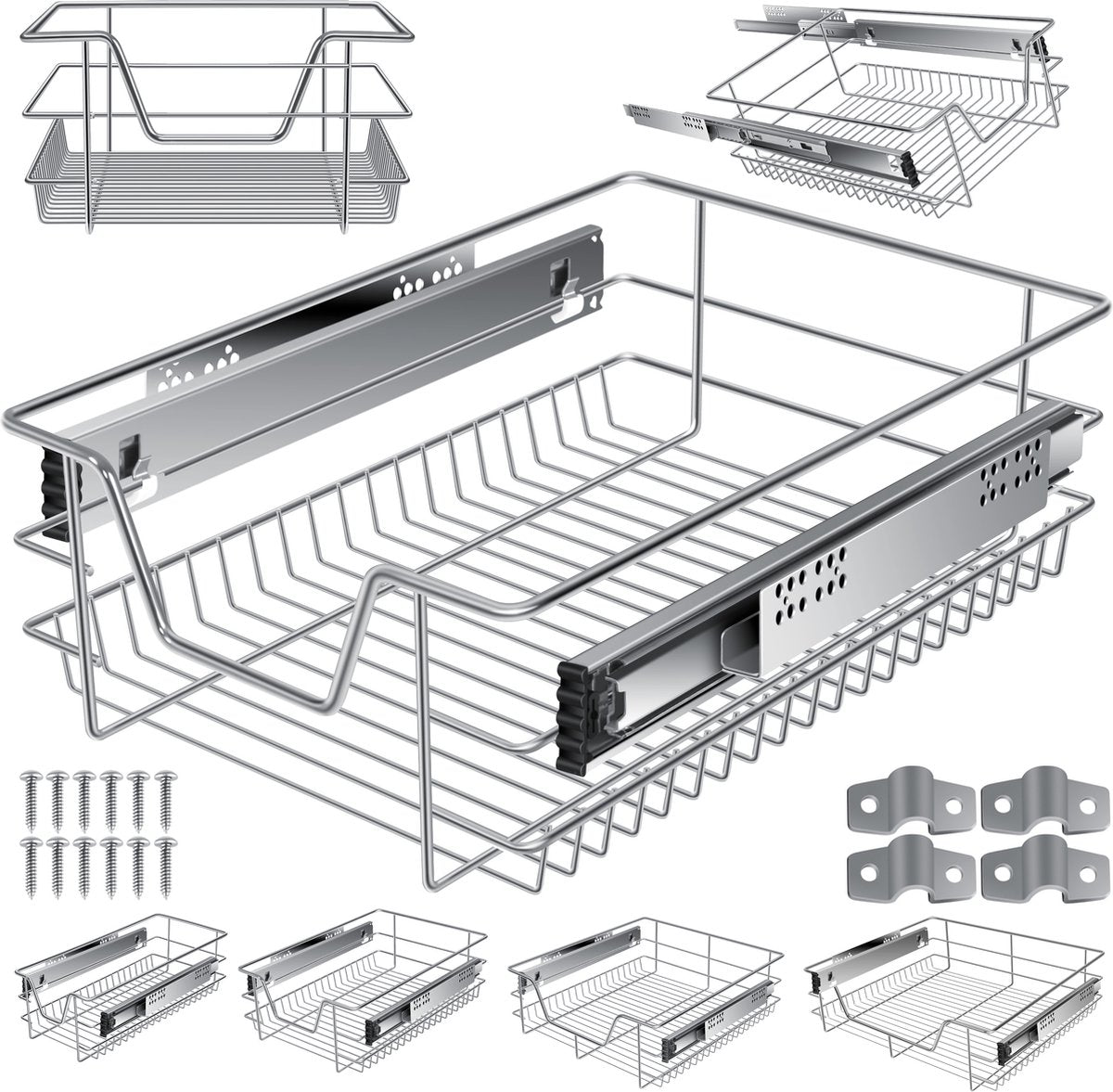 KESSER telescopische lade voor meer overzicht en orde, waardoor het gemakkelijker wordt om dingen op te bergen en uit te nemen, snel en eenvoudig te monteren, voor montage achteraf in uw bestaande kasten of planken.