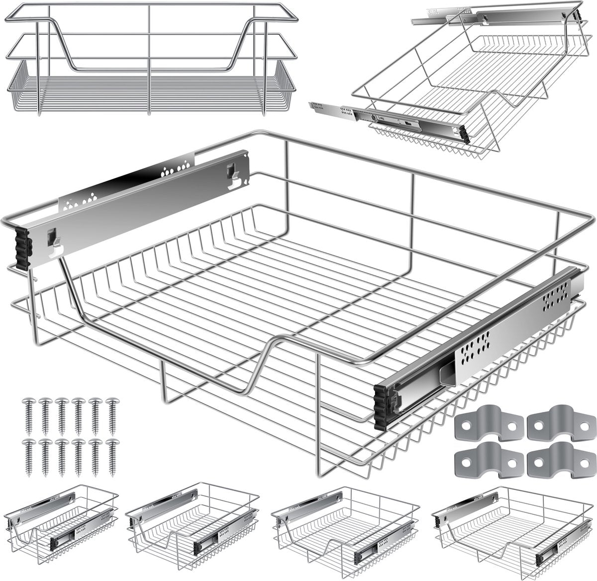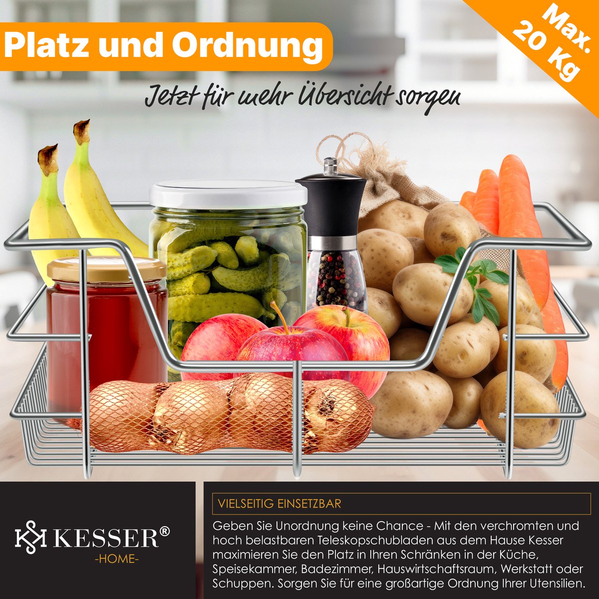 KESSER telescopische lade voor meer overzicht en orde, waardoor het gemakkelijker wordt om dingen op te bergen en uit te nemen, snel en eenvoudig te monteren, voor montage achteraf in uw bestaande kasten of planken.