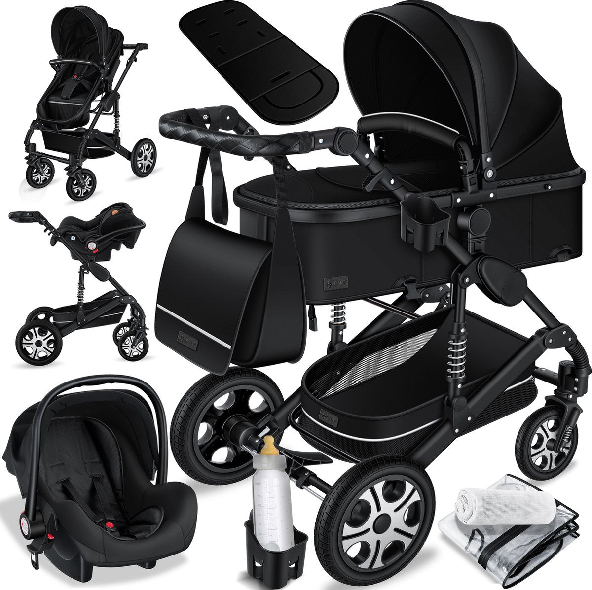 Kinderwagen 3 in 1 - Buggy - Wandelwagen - Kinderbuggy - Zwart - KESSER®