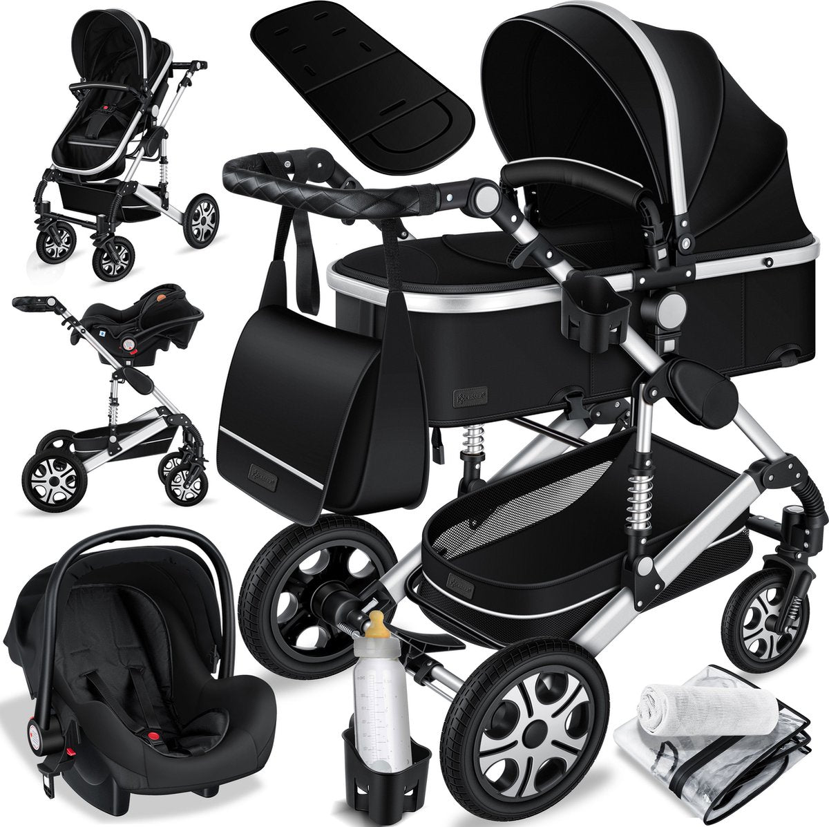 3IN-1 COMPLETE SET: alles wat je nodig hebt vanaf de geboorte tot de peuterleeftijd. de 3in1 kinderwagen met een breed scala aan accessoires geeft je ideale mobiliteit vanaf het moment dat je kind geboren is. de kinderwagen houdt je baby comfortabel vast. je kunt de babydrager vanaf de eerste rit in de auto gebruiken. het kliksysteem maakt het eenvoudig om de babydrager op het frame te bevestigen. er is geen aparte adapter nodig. klik de babydrager met één klik op de kinderwagen.