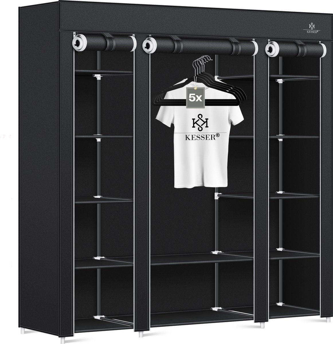 KESSER® Kledingkast Stoffen Kledingkast Stabiel met Kledingstang & Planken, Inclusief 5x Kledinghangers, Stoffen Opvouwbare Kast voor Slaapkamer, Dressingkamerkast met Kledingrek 150x45x175cm